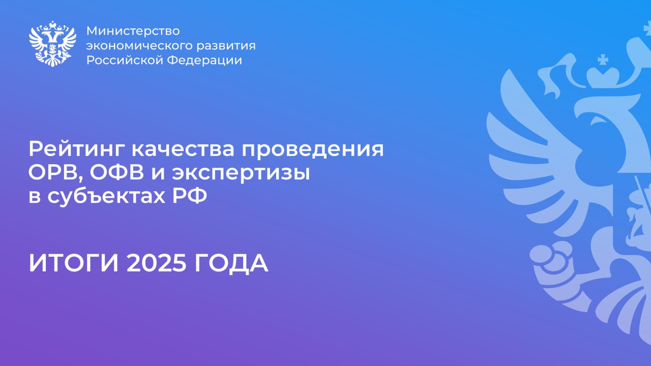 Край занял 9ю строчку в рейтинге Минэкономразвития РФ по качеству проведения оценки регулирующего воздействия (ОРВ) за 2025 год.
