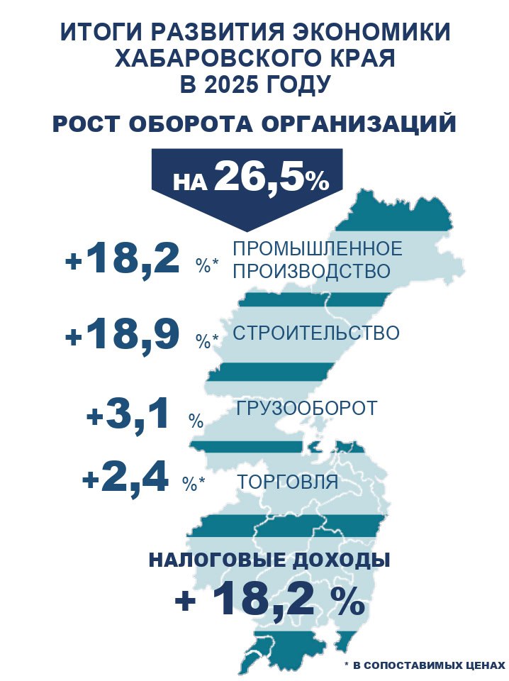 Объемы промышленного производства возросли на 18,2%. По темпам развития промышленности край занимает лидирующие позиции: 1-е место в ДФО и 2-е место в целом по стране.