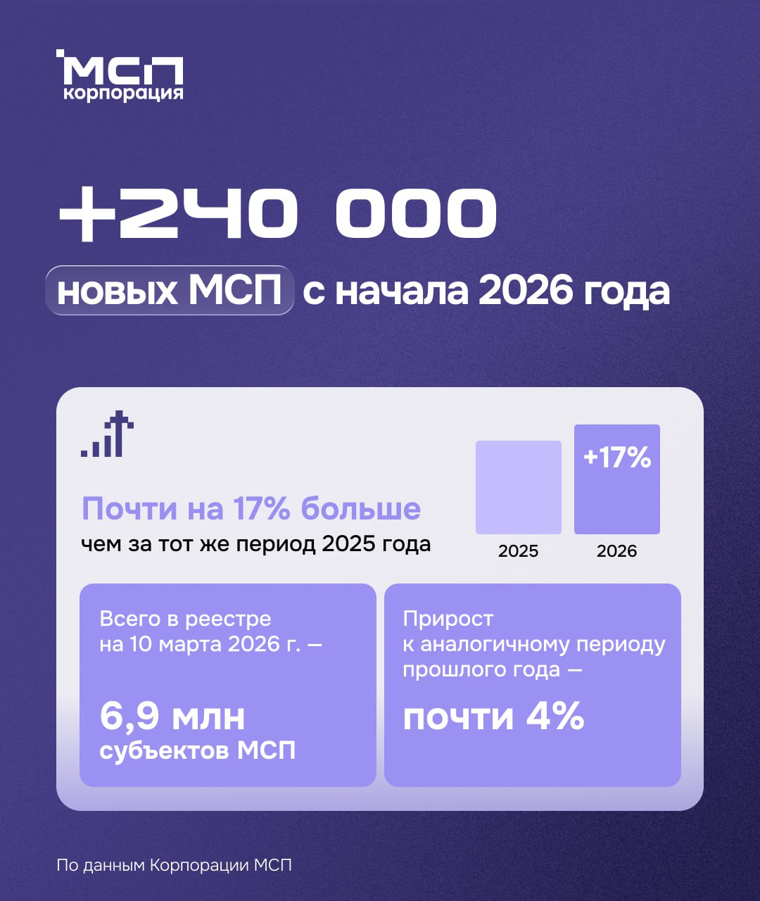 С начала 2026 года в России появилось более 240 тысяч новых МСП — на 17% больше, чем годом ранее
