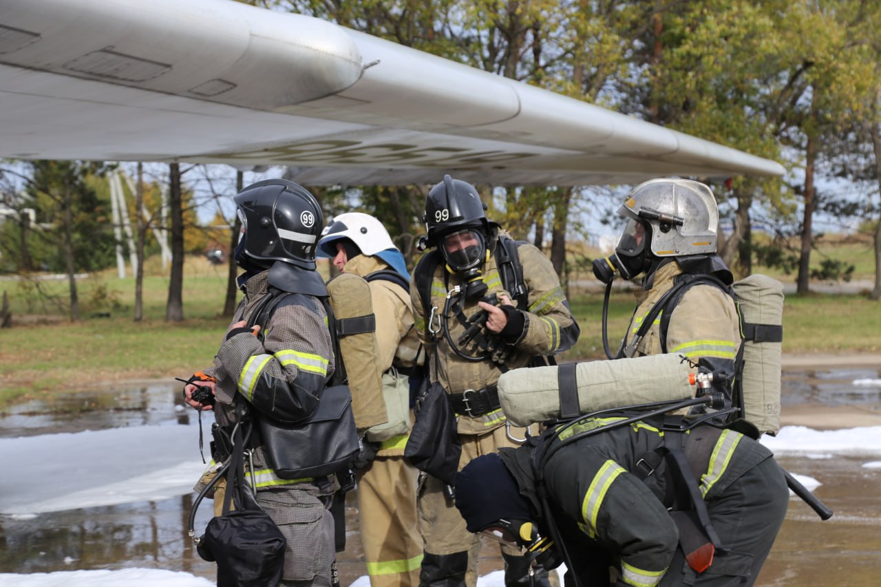 На перроне Международного аэропорта Хабаровск прошли совместные учения пожарных МЧС России и службы аэропорта СПАСОП по отработке действий по тушению возгорания на учебном воздушном судне. Такие мероприятия проводятся с целью повышения уровня готовности и слаженности действий всех служб, задействованных в ликвидации чрезвычайных ситуаций.