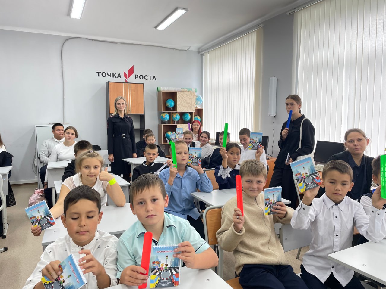 Сотрудник полиции рассказала школьникам о правилах безопасного поведения на проезжей части, объяснила различие светофоров и напомнила, что перед началом движения необходимо убедится в остановке транспортных средств. Подробно разобрали ситуации об опасности использования наушников и мобильных телефонов при движении по улицам.