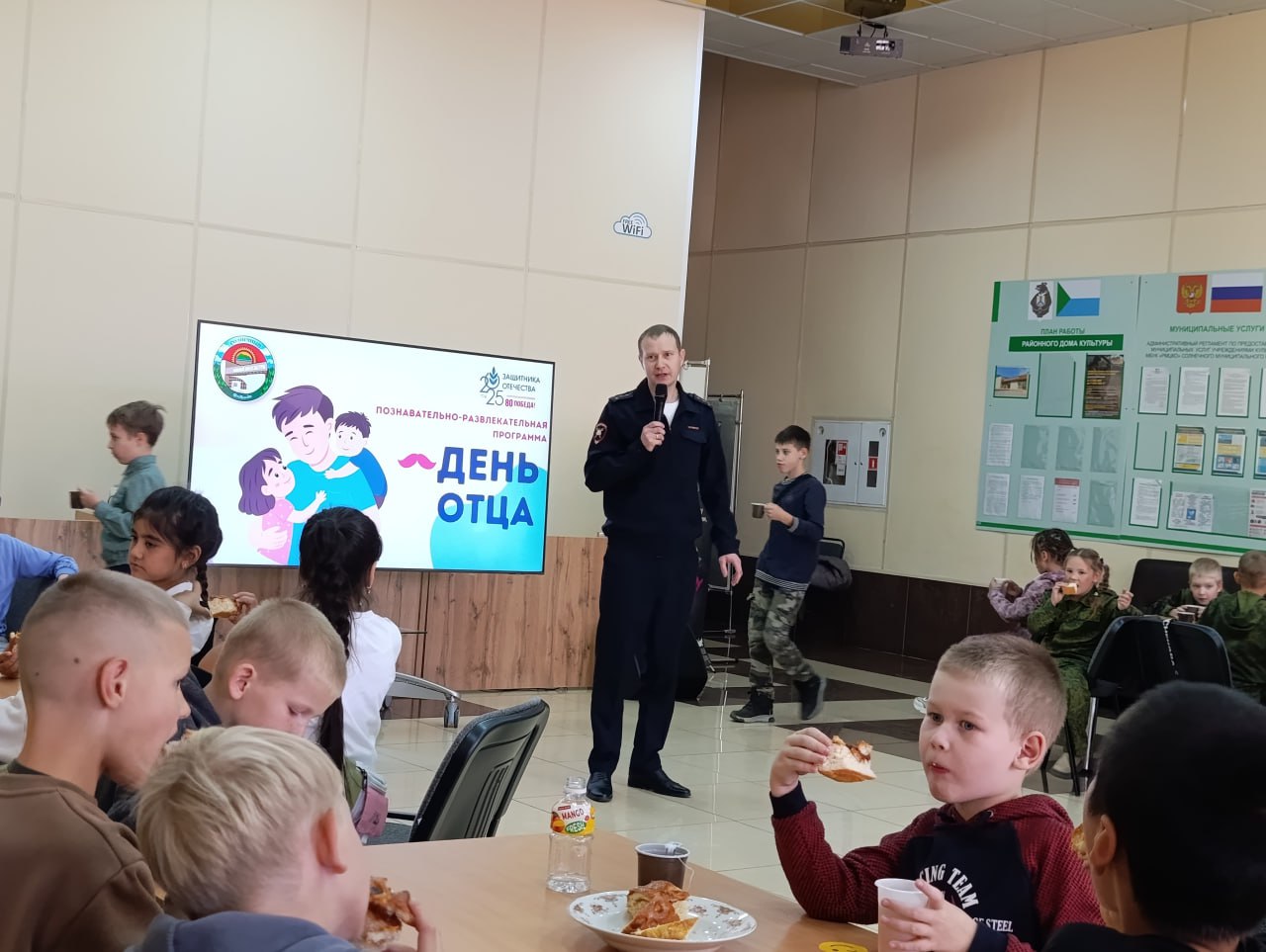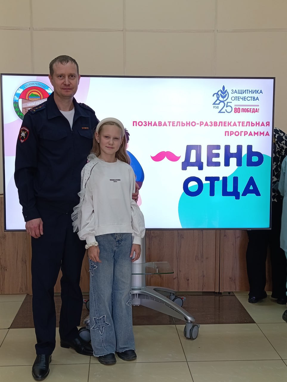 Старший инспектор по пропаганде безопасности дорожного движения капитан полиции Евгений Пятаков принял участие в мероприятии посвященному празднованию «Дня отца» для детей посёлка Солнечный проводимым «Районном домом культуры» рассказав о своей профессии Госавтоинспектора и интересных случаях из своей службы. В настоящий восторг детей привёл показ специальной амуниции полицейского.