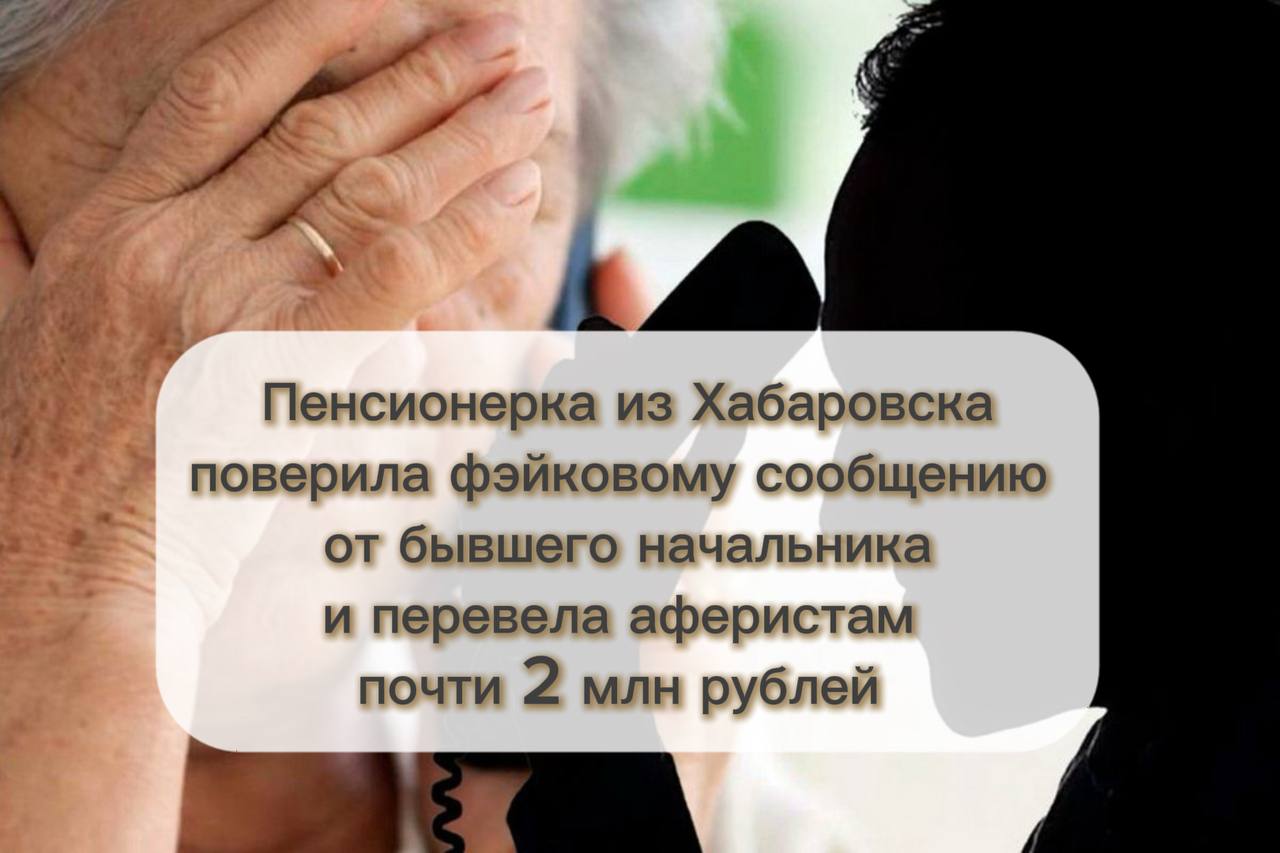 Пенсионерка из Хабаровска поверила фейковому сообщению от бывшего начальника и перевела аферистам почти 2 млн рублей