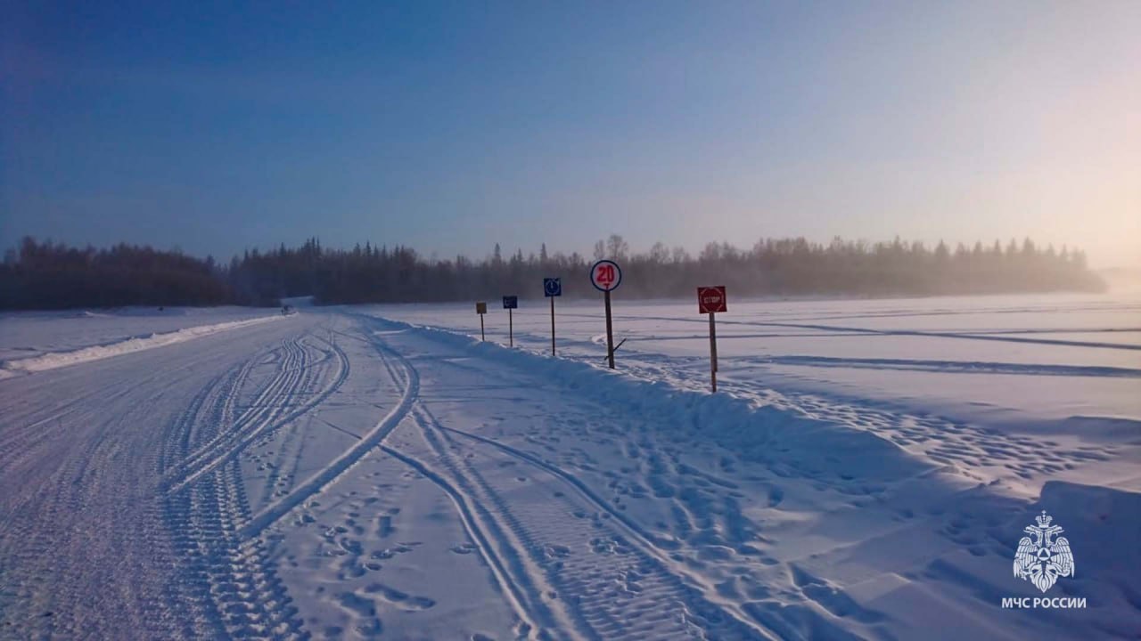 Ледовая переправа отвечает установленным требованиям безопасности и взята на учет инспекторами ГИМС МЧС России.