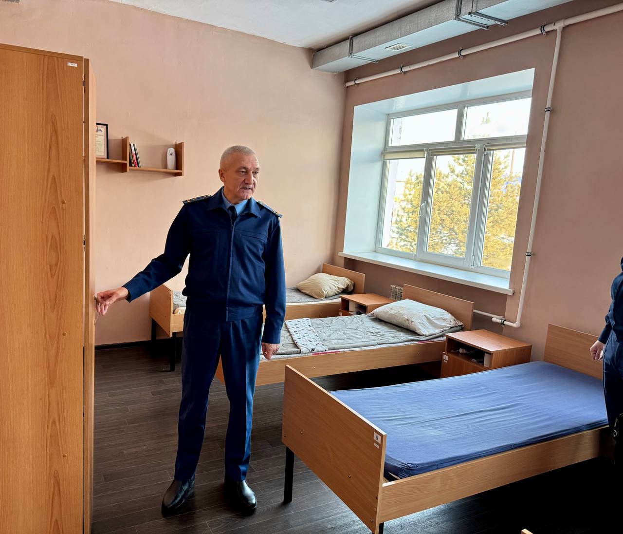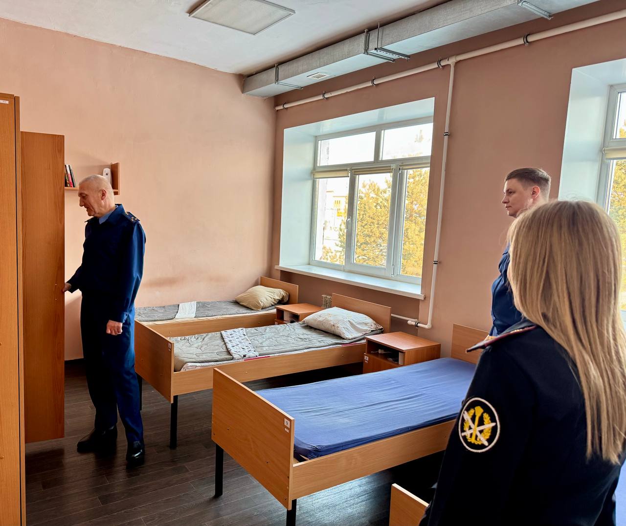 Заместитель прокурора Хабаровского края осмотрел комнаты обшежития, помещение для нарушителей и коммунально-бытовые объекты, оценил состояние законности при привлечении осужденных к труду и условия их содержания.