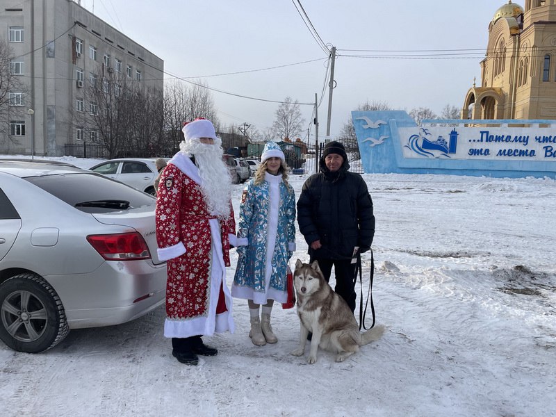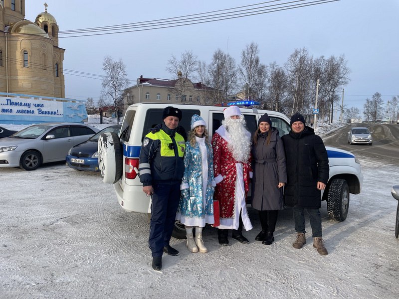 В Ванинском районе прошла традиционная акция «Полицейский Дед Мороз». В центре посёлка Ванино, неподалёку от площади Мира, сотрудники Госавтоинспекции в образах Деда Мороза и Снегурочки вместе с нарядом дорожнопатрульной службы вышли на дороги, чтобы встретиться с водителями и пешеходами.