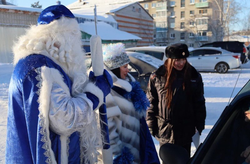 В рамках Всероссийской акции «Полицейский Дед Мороз» дорожные полицейские организовали профилактические беседы с участниками дорожного движения в городе Николаевск-на-Амуре.