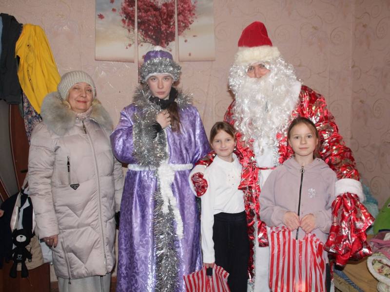 В новогодние дни сотрудники ОМВД России по Советско-Гаванскому району и члены общественного совета в образах сказочных персонажей посетили Молодежный центр, поздравив многодетную семью и семью, состоящую на профилактическом учете.