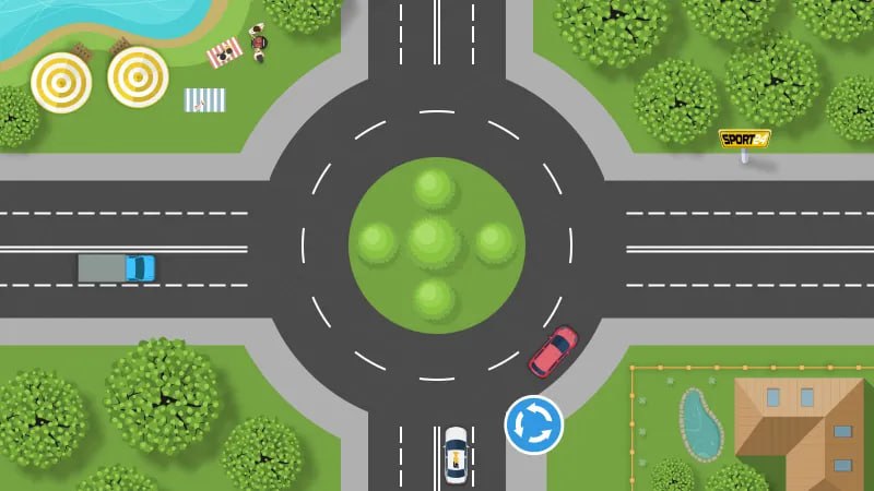 Въезд на перекресток с круговым движением соответствует повороту направо. Соответственно включение правого указателя поворота. Двигаясь по кругу, водитель белого ТС не изменяет направления движения, поэтому сигнал не использует.