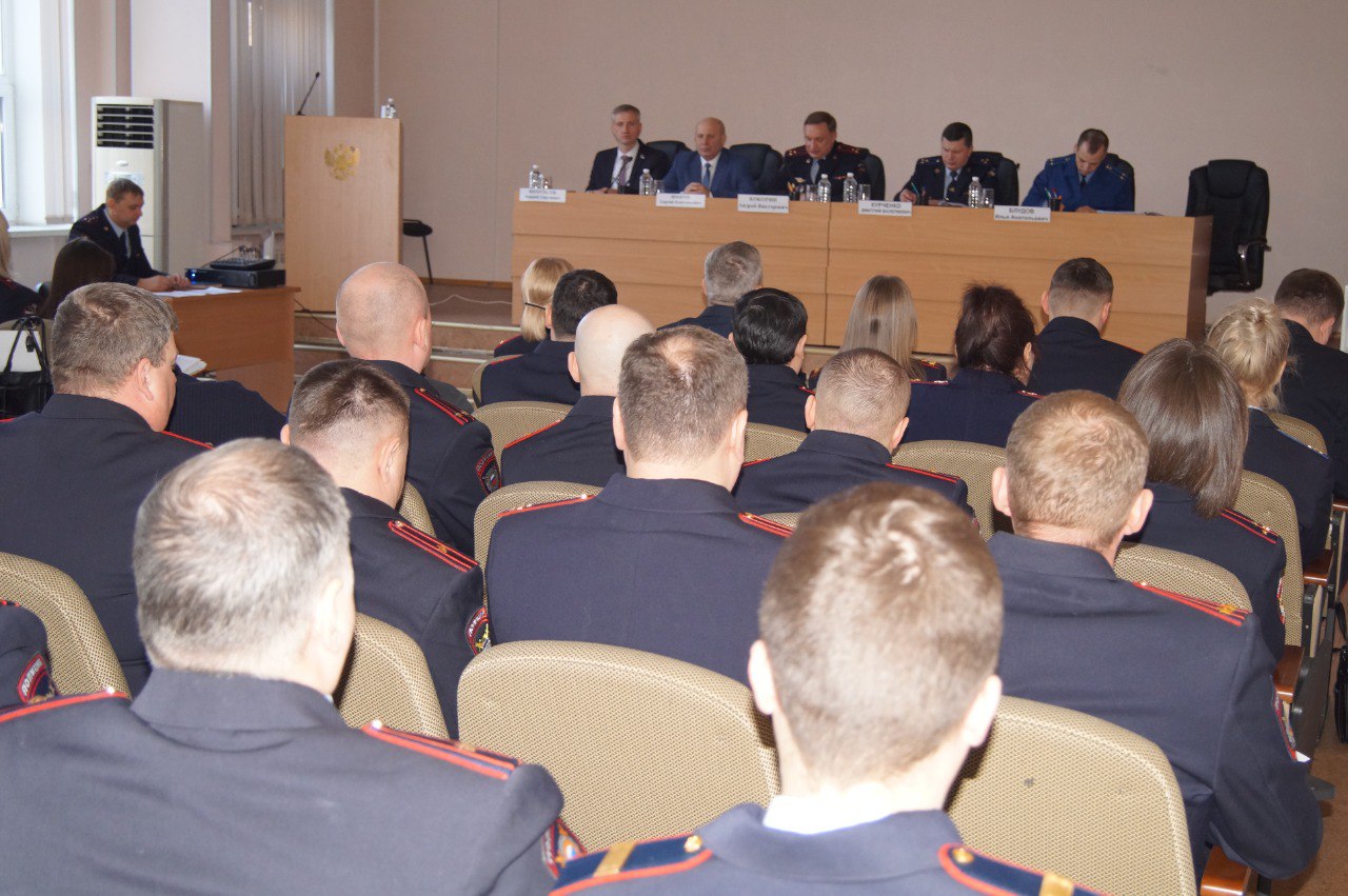 Оперативное совещание прошло под председательством заместителя начальника УМВД России по Хабаровскому краю - начальника следственного управления полковника юстиции Дмитрия Курченко.