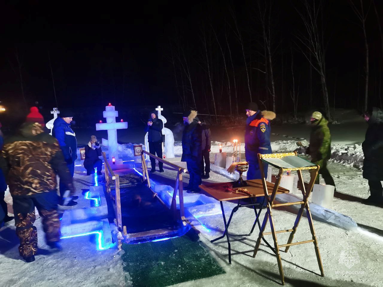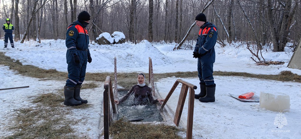 Сотрудники МЧС России и других экстренных служб обеспечивают дежурство в местах проведения крещенских омовений. Всего в крае организовано 23 места с купелями, где все желающие могут совершить данный обряд.