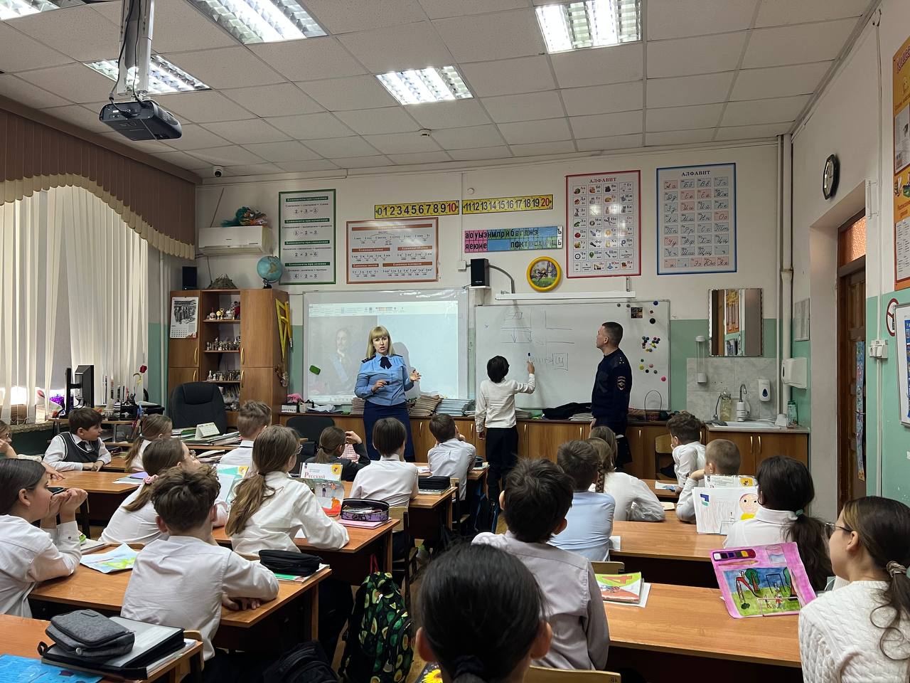 Сотрудник Госавтоинспекции города Хабаровска совместно с помощником прокурора Индустриального района города Хабаровска провели профилактическую лекцию по правовой пропаганде с учащимися МАОУ СШ 10.