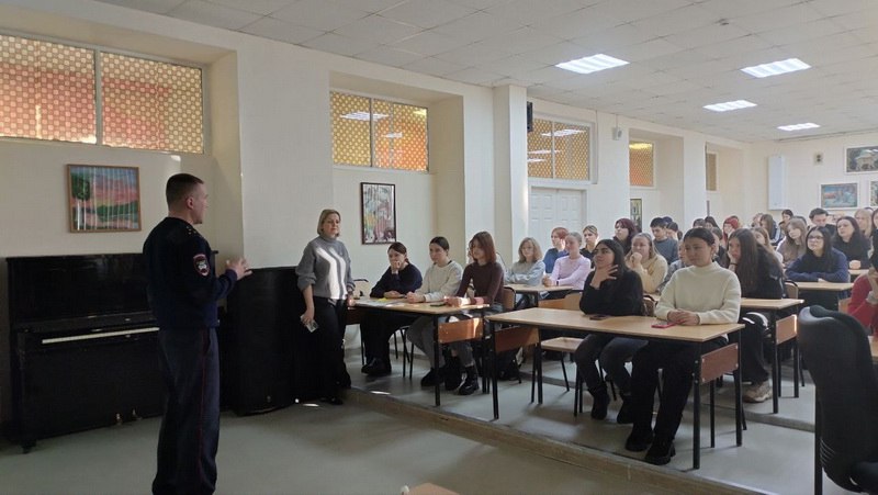 Встреча началась с детального разбора типичных ошибок, которые допускают пешеходы и водители. Инспекторы акцентировали внимание на ситуациях, особенно актуальных для студенческой молодёжи: переход дороги в неположенном месте, использование наушников и смартфона при переходе проезжей части, невнимательность вблизи общественного транспорта, риски управления двухколёсным транспортом без защиты.