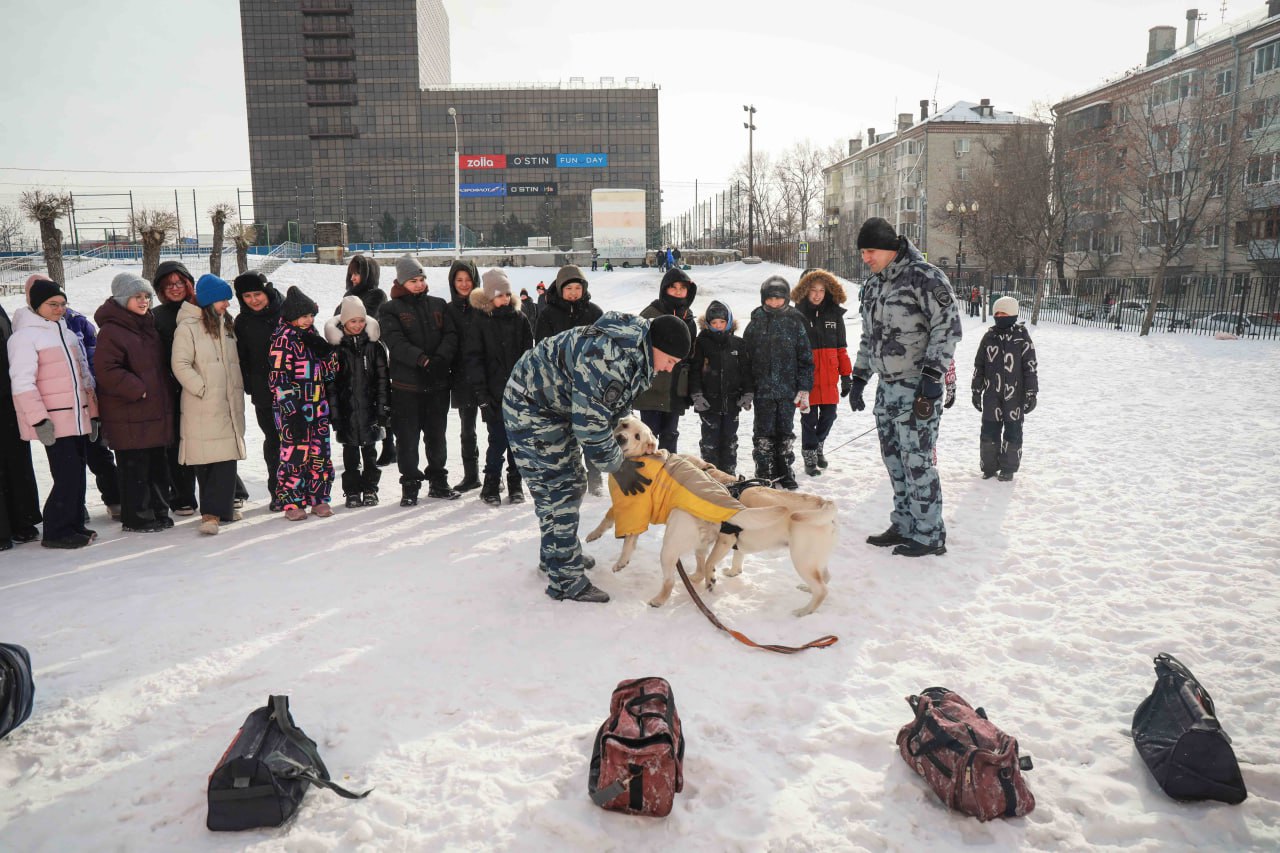 В заключении мероприятия сотрудники кинологической службы продемонстрировали учащимся навыки служебных собак, которые показали свою способность находить взрывчатые вещества. Показательное выступление вызвало большой интерес у детей.