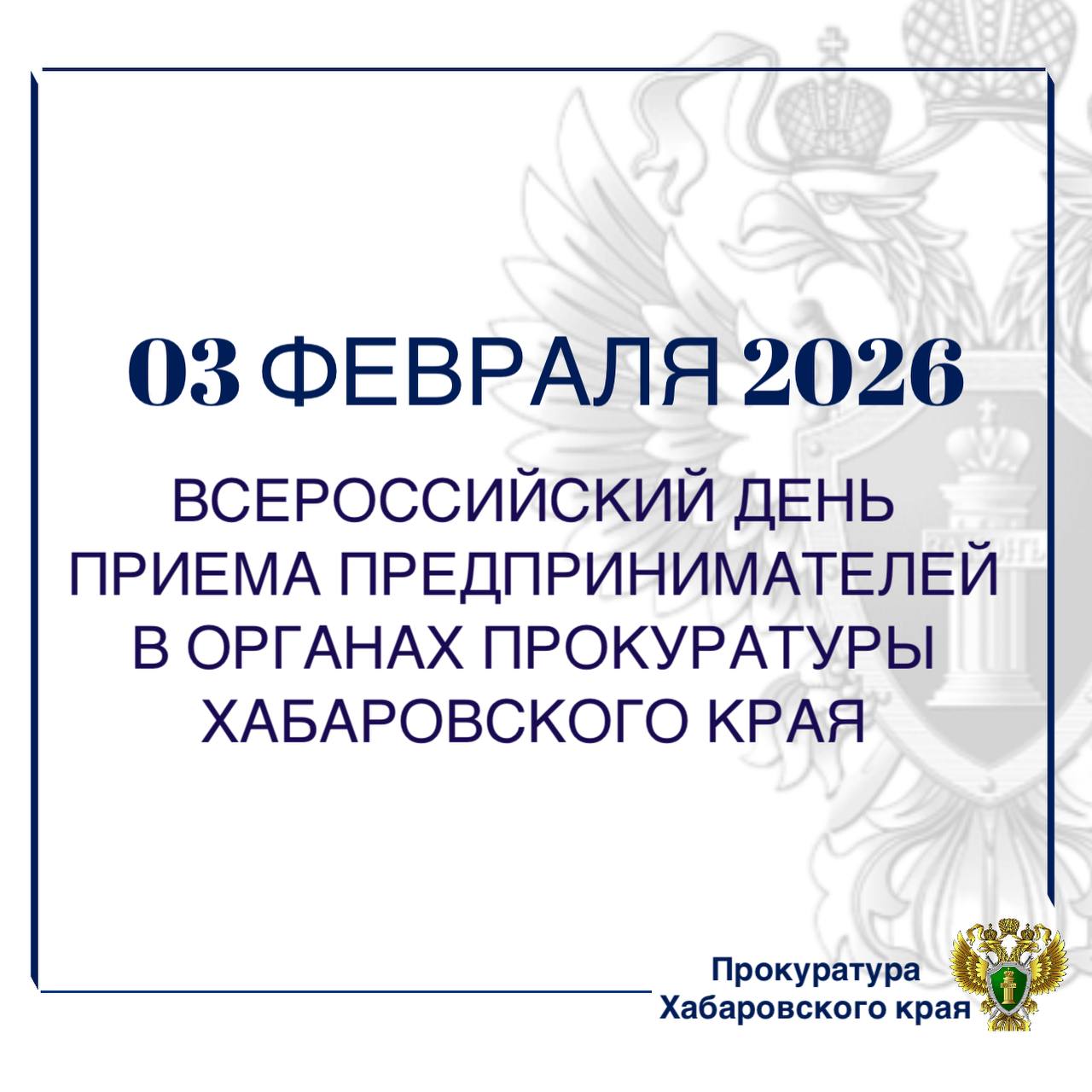 В органах прокуратуры Хабаровского края «03» февраля 2026 года пройдет Всероссийский день приема предпринимателей