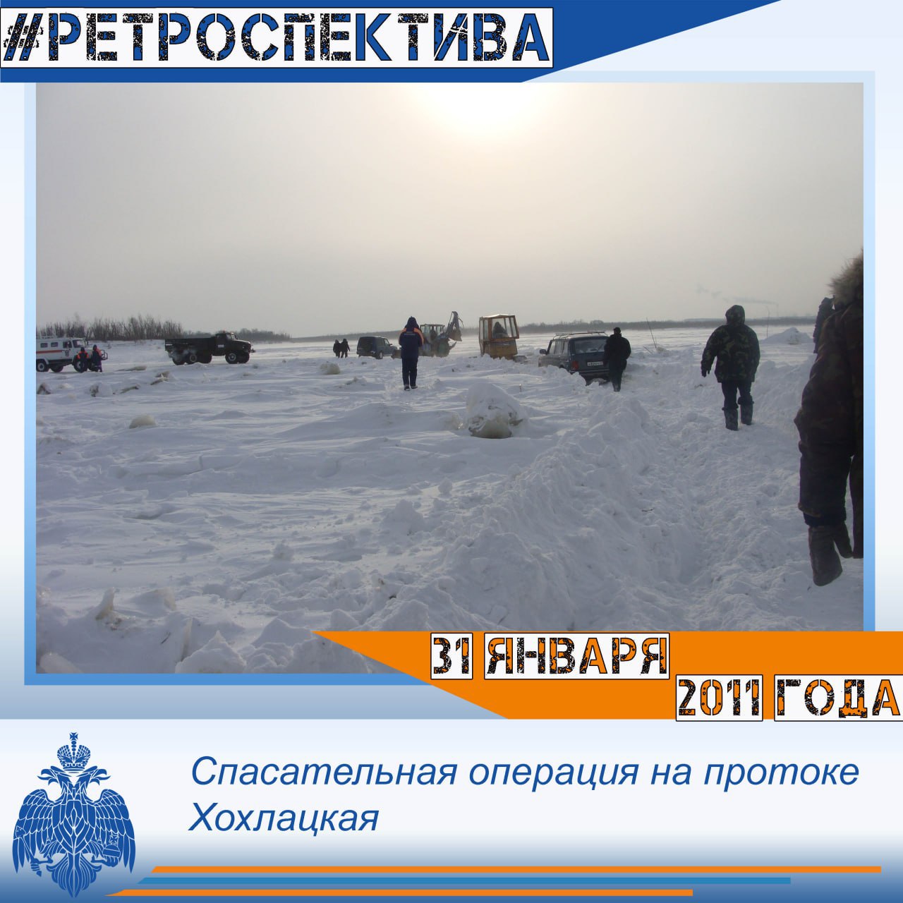 30 января 2011 года, пригород Хабаровска. 44 автомобиля застряли на несанкционированной переправе через Амур на протоке Хохлацкая. Люди выехали на подлёдный лов, но порывистый ветер создал снежные заносы.
