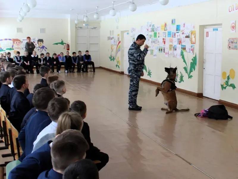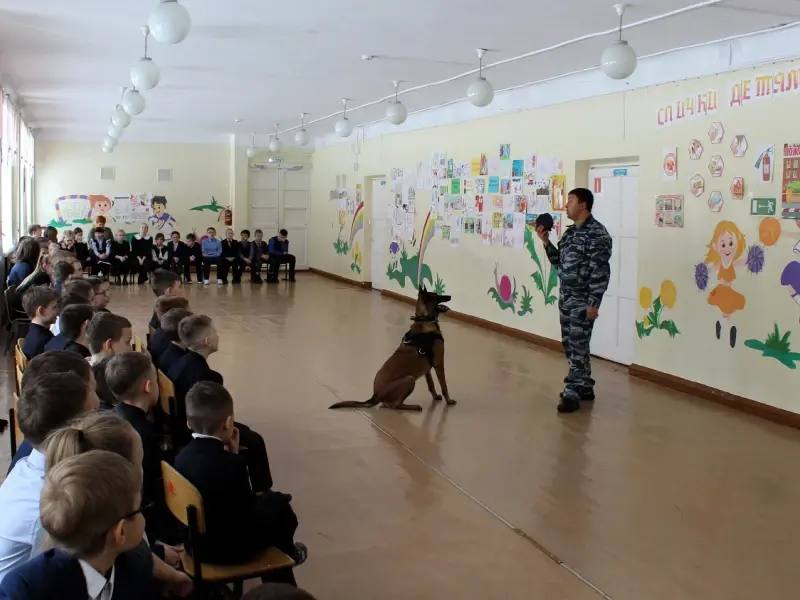 Очень впечатлил ребят начальник кинологической службы со своей служебной собакой по кличке Беркут. Он рассказал какие породы собак используются в розыскной деятельности. И объяснил, почему их подготовка требует координации и послушания. Правоохранитель продемонстрировал профессиональные навыки своего четвероногого напарника, включая выполнение сложных команд. Это позволило детям наглядно убедиться в высоком уровне подготовки служебных собак в решении задач, связанных с обеспечением общественной безопасности и правопорядка. Затем полицейский разрешил школьникам погладить своего питомца и предостерег, почему нельзя без разрешения приближаться к незнакомым животным.