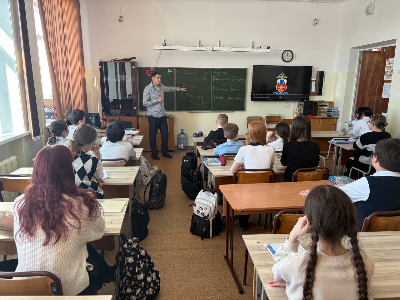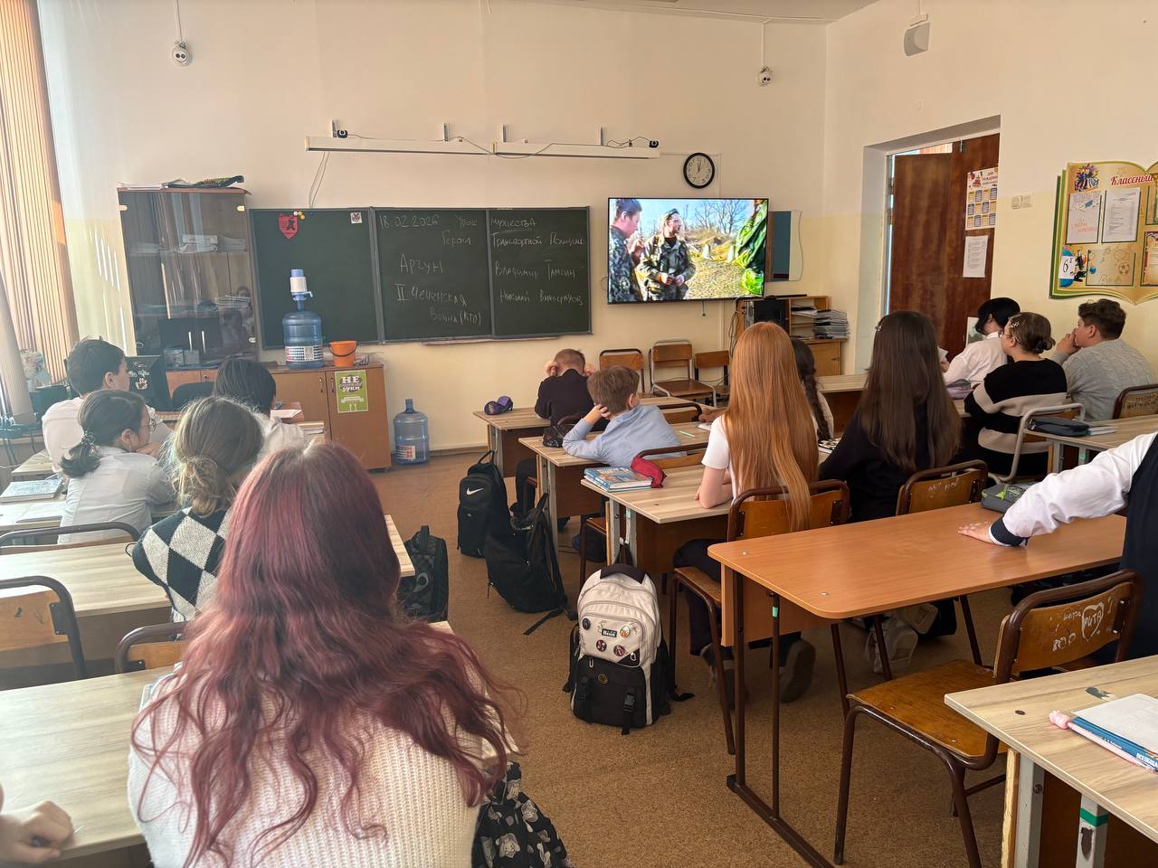 Юным слушателям был продемонстрирован документальный фильм о героях России Владимире Тамгине, Николае Виноградове и Виталии Бугаеве, которые погибли в Контртеррористической операции на Северном Кавказе, защищая родину.