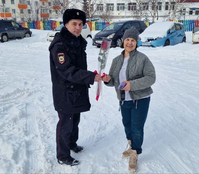 Полицейские вышли на улицы города, чтобы поздравить прекрасную половину человечества с наступающим праздником. Вместо строгих проверок документов женщины получали цветы, теплые пожелания и полезные памятки о безопасности.Участковый уполномоченный лейтенант полиции Александр Рекин не только дарил цветы на улицах, но и проводил с женщинами профилактические беседы, предостерегая их от действий мошенников.