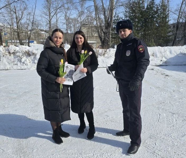 На улицах Комсомольска-на-Амуре, Амурска и Бикина полицейские подарили цветы местным жительницам в преддверии Международного женского дня