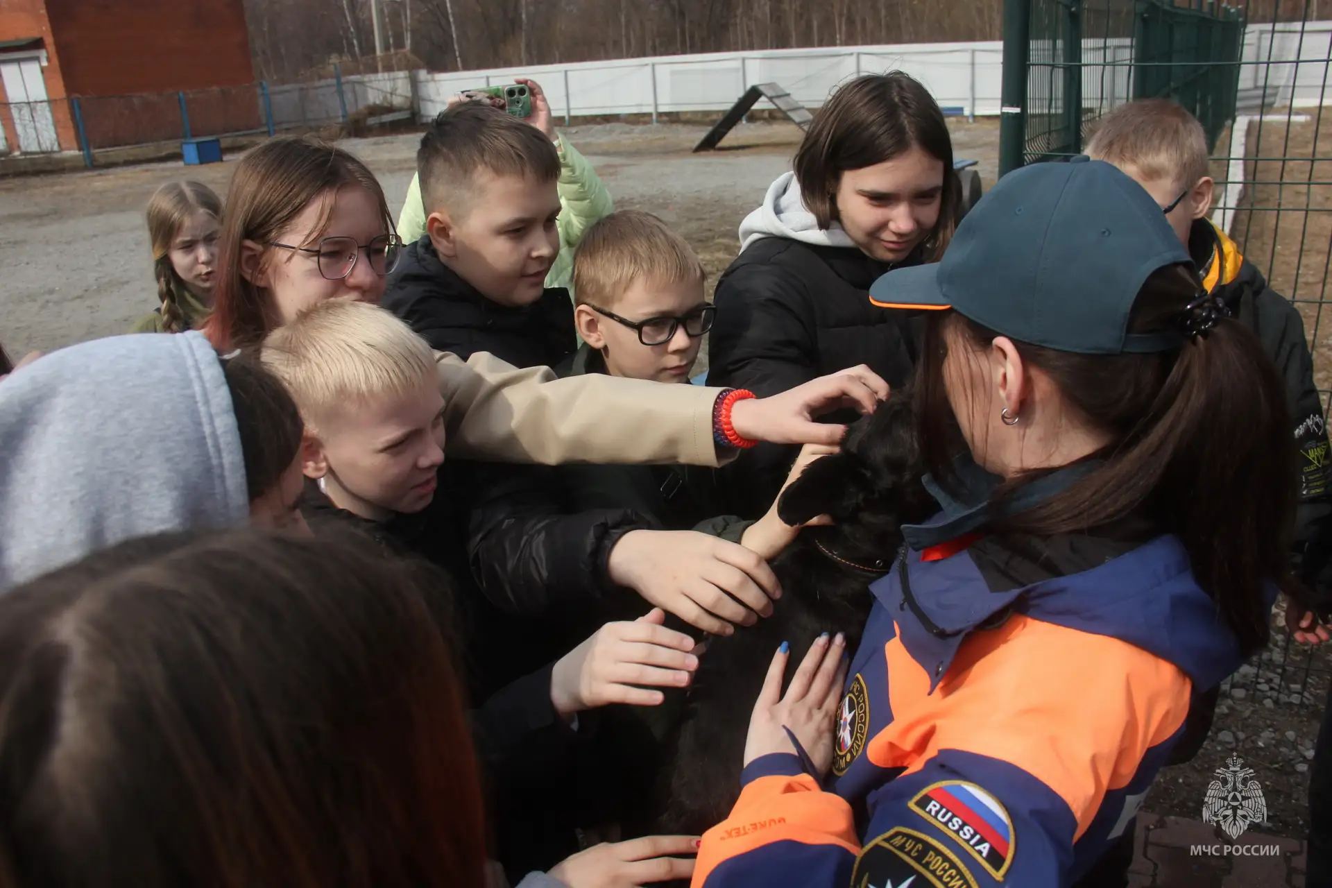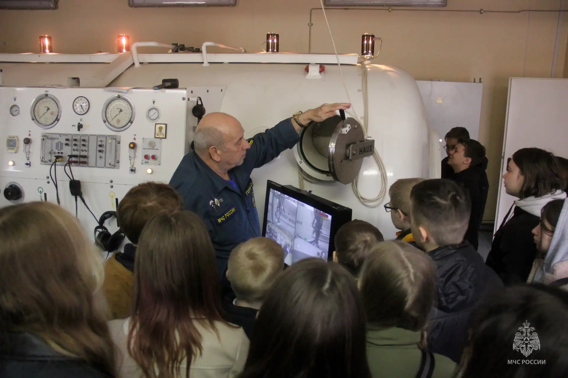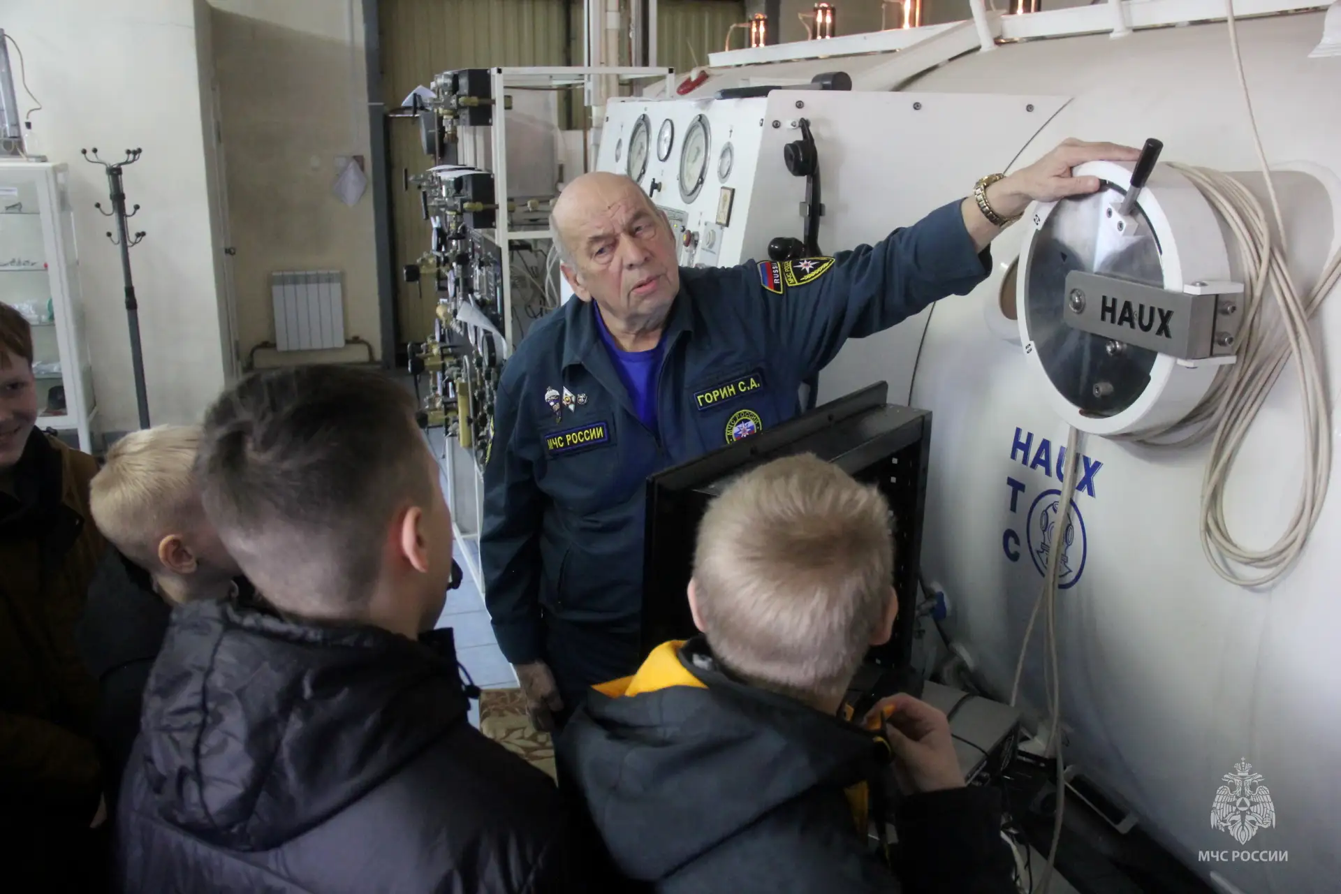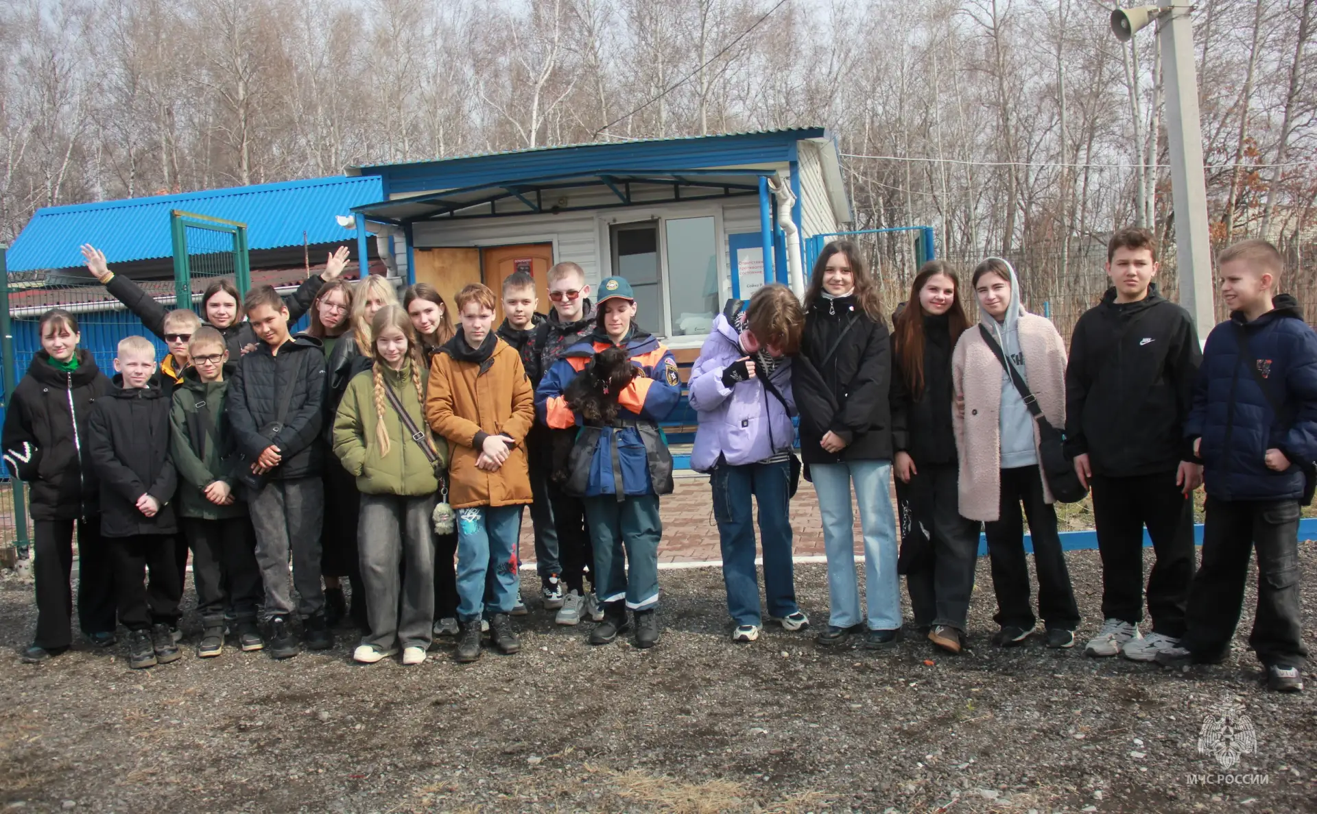 Продолжением урока стала познавательная экскурсия, в ходе которой ребята познакомились с профессионалами поисково-спасательного отряда ГУ МЧС России по Хабаровскому краю, побывали в водолазной службе, барокомплексе, кинологическом городке. Пятиклассники увидели аварийно-спасательную технику, специальное оборудование и снаряжение, которое используется при проведении поисковых и спасательных операций.