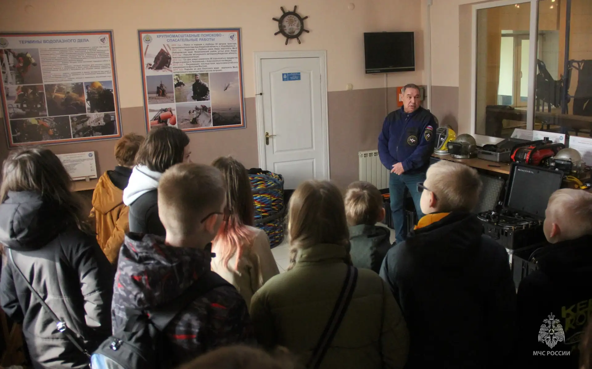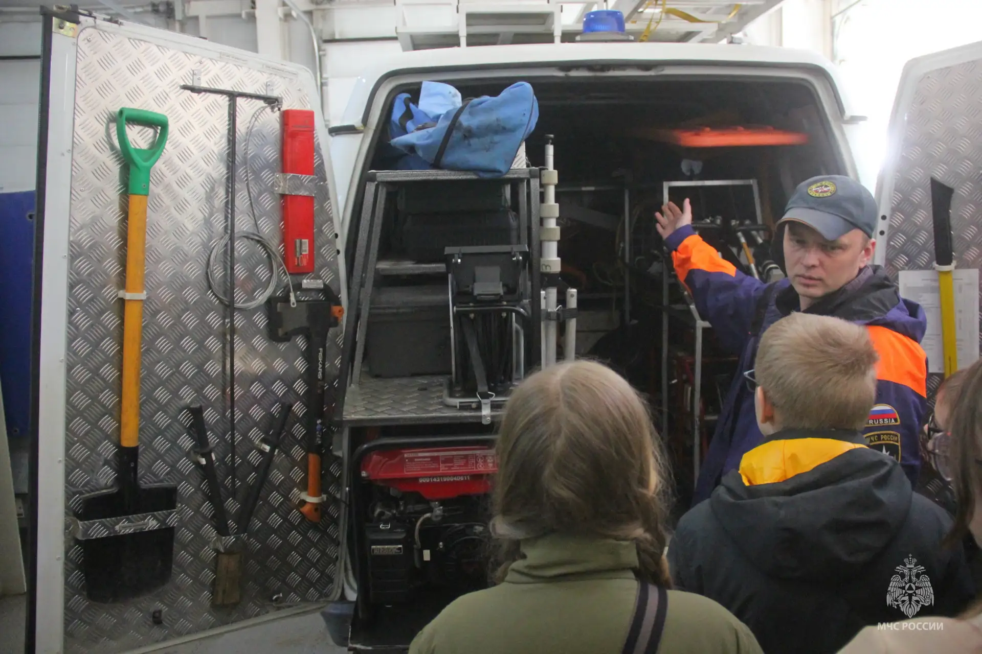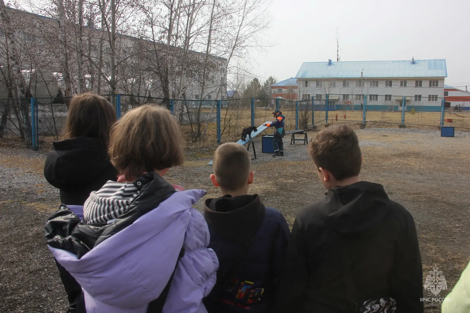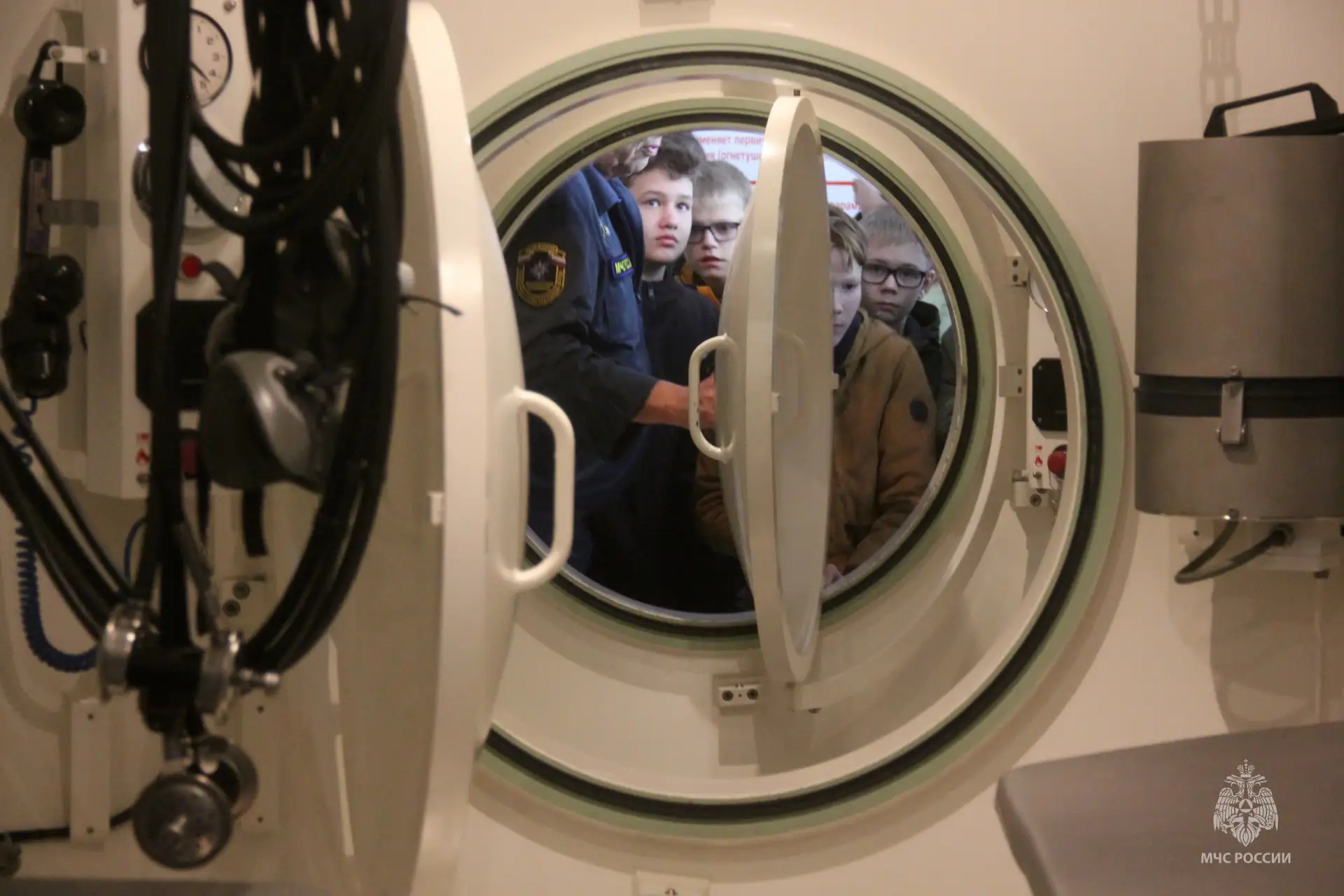 Продолжением урока стала познавательная экскурсия, в ходе которой ребята познакомились с профессионалами поисково-спасательного отряда ГУ МЧС России по Хабаровскому краю, побывали в водолазной службе, барокомплексе, кинологическом городке. Пятиклассники увидели аварийно-спасательную технику, специальное оборудование и снаряжение, которое используется при проведении поисковых и спасательных операций.