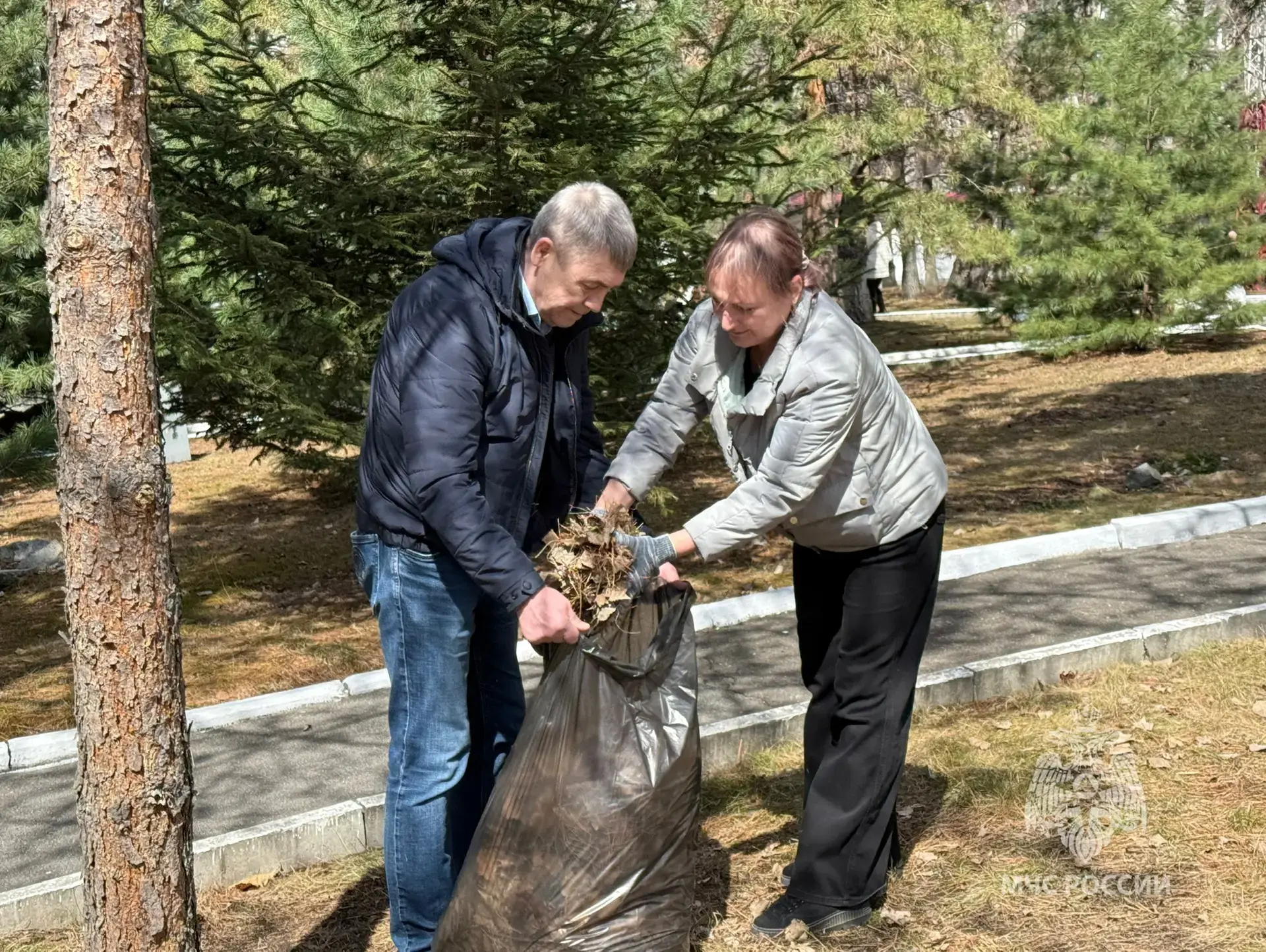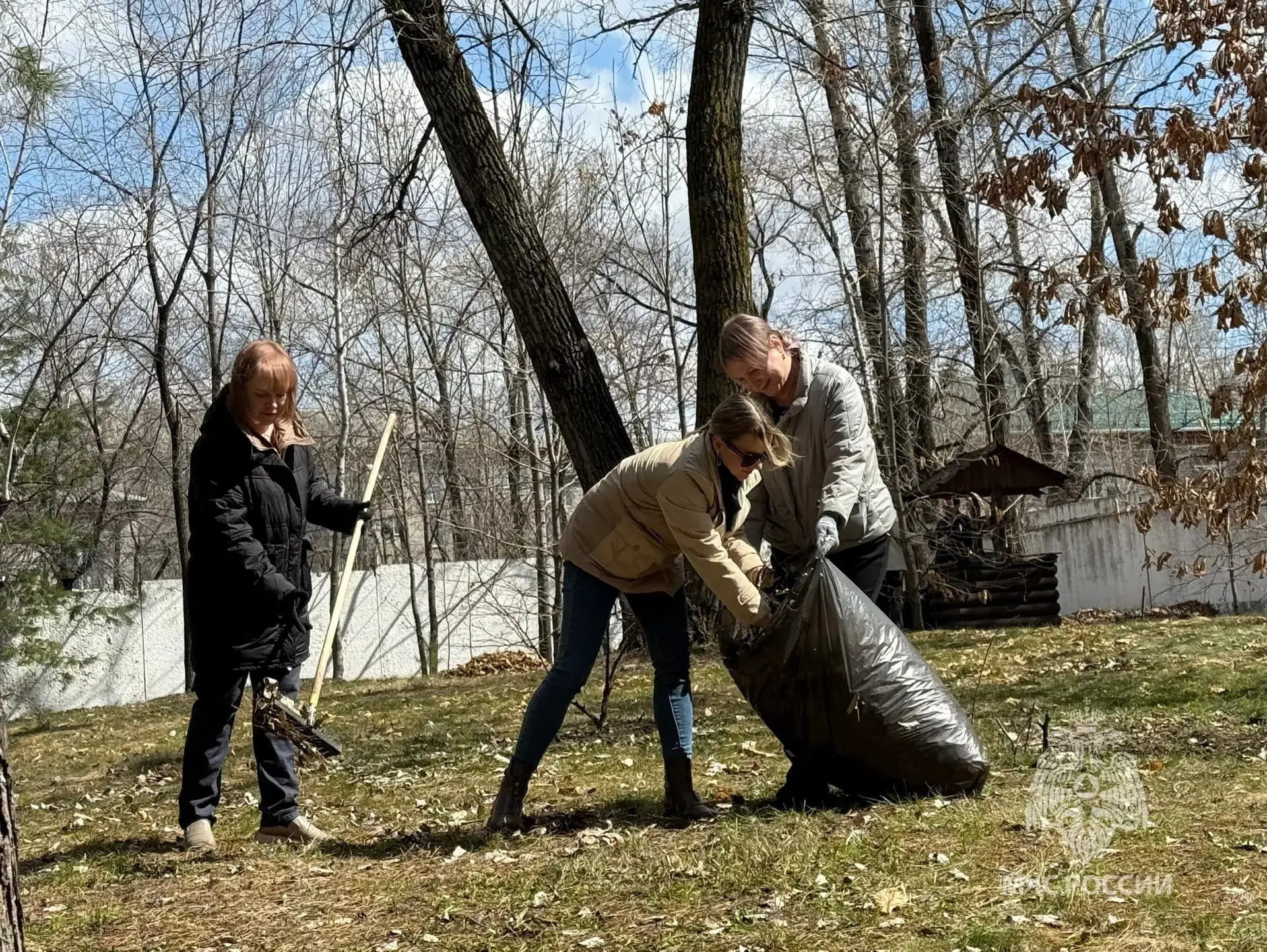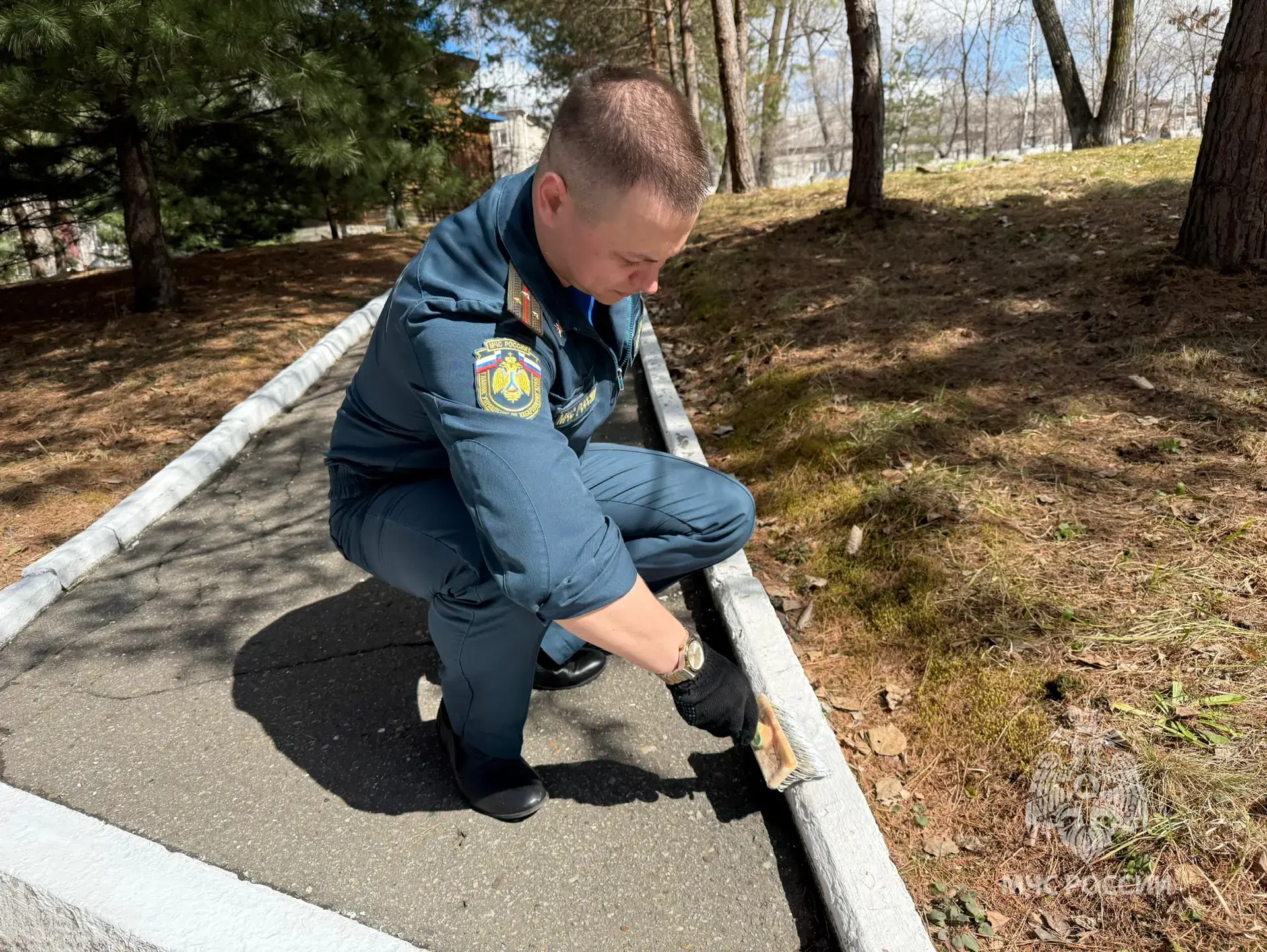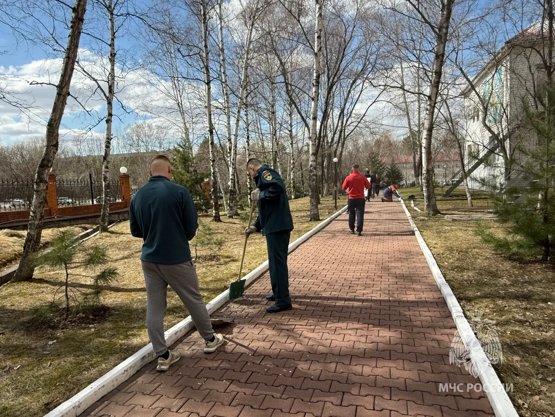 Сотрудники Главного управления МЧС России по Хабаровскому краю присоединились к общегородскому субботнику и навели порядок на своей и прилегающей территории. Уборка старой листвы и веток, мусора, покраска бордюров и ограждений.