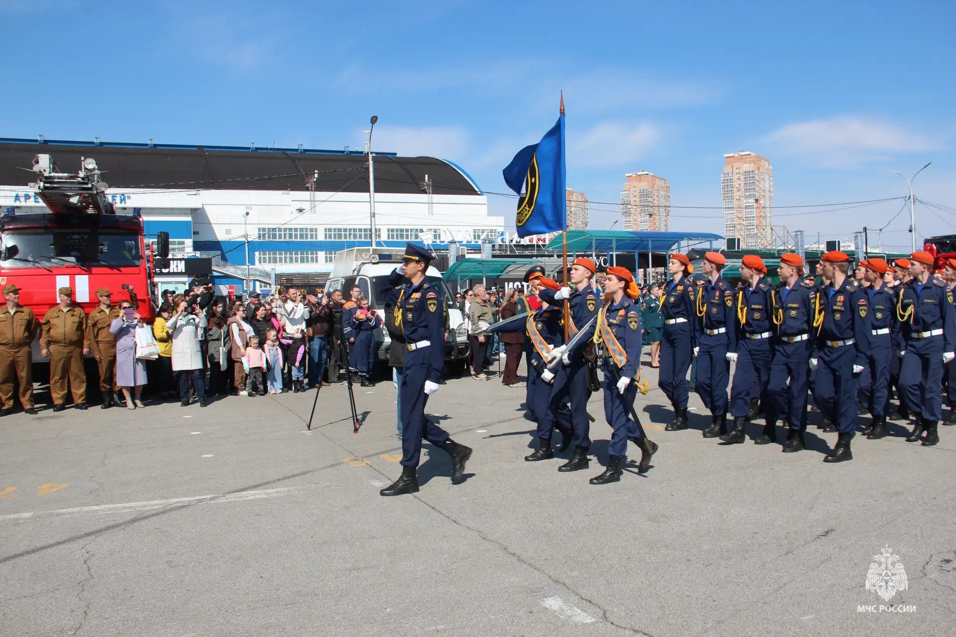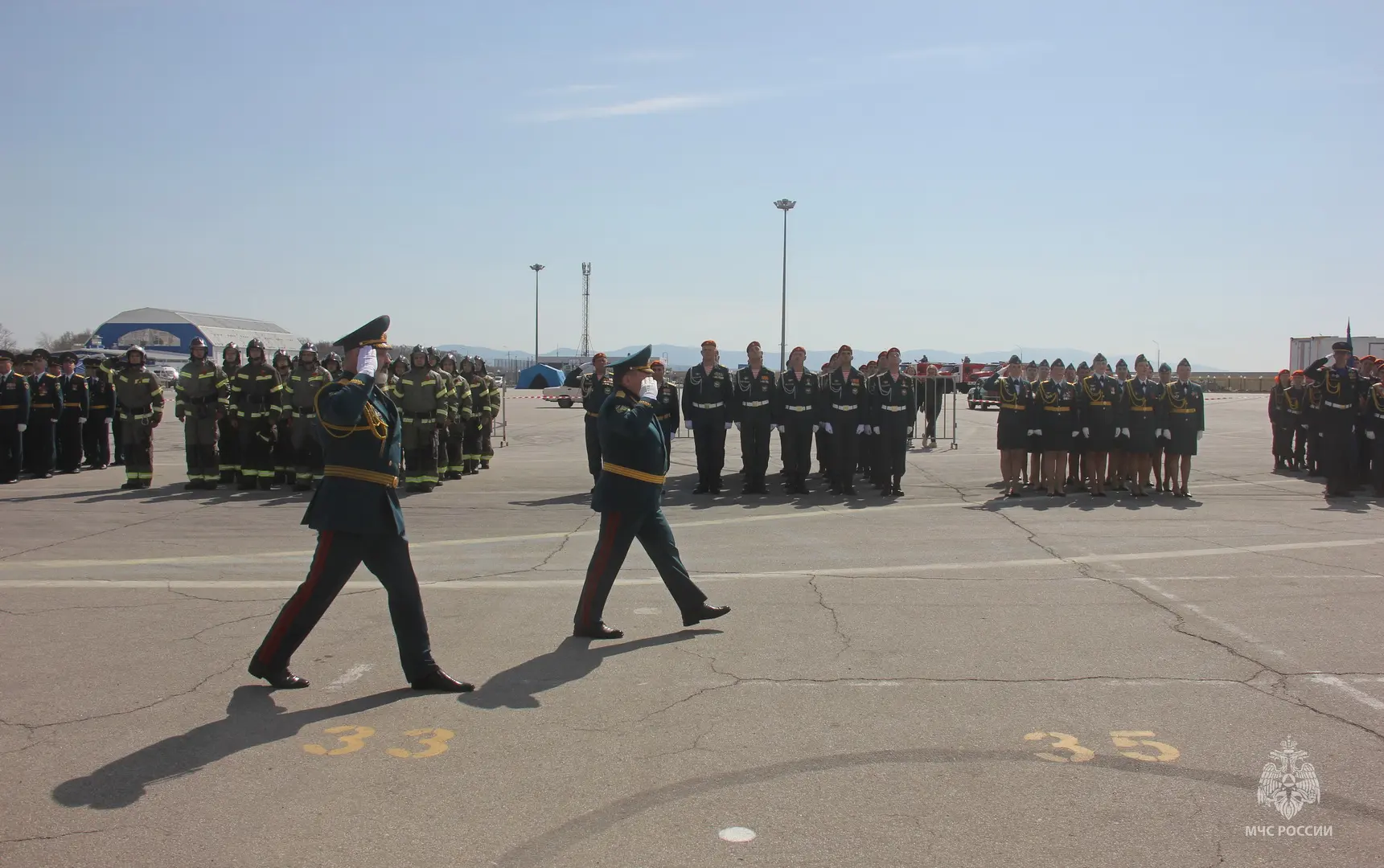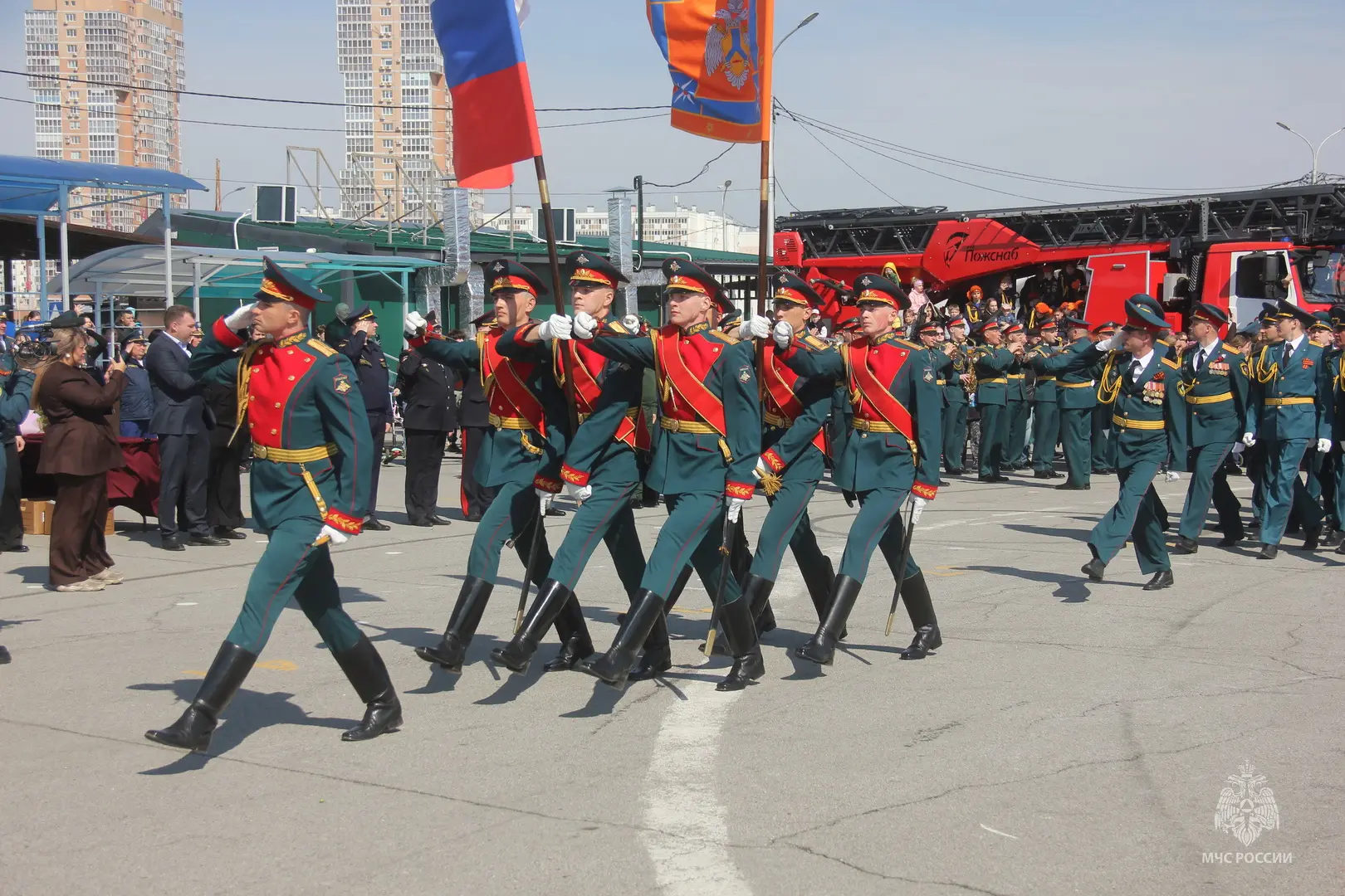 Завершилась торжественная часть праздника парадным маршем коробок офицеров МЧС России, пожарных, сотрудниц спасательного ведомства, военнослужащих Амурского спасательного центра и кадетов МЧС.