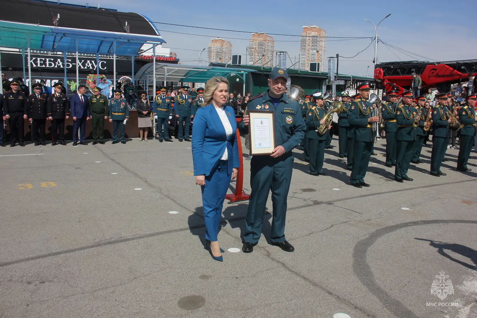 Во время праздниного мерояприяти в присутствии личного состава Главного управления МЧС России по Хабаровскому краю, краевой противопожарной службы, кадетов, гостей праздника прошло награждение сотрудников, внёсших значимый вклад в дело спасения людей и защиты населения и объектов экономики от огня, ведомственными наградами МЧС России, грамотами и благодарностями губернатора края. В их числе пожарные, специалисты авиалесоохраны, пожарного поезда, государственного пожарного надзора и другие, всего 28 человек.