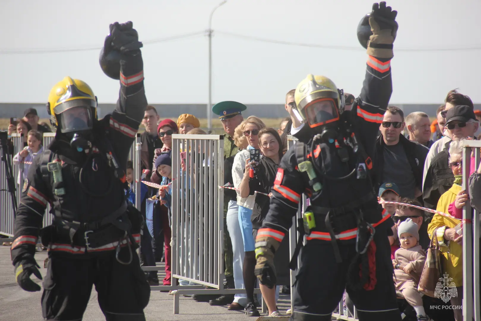 Все гости праздничного мероприятия сегодня смогли увидеть как пожарные и спасатели применяют свои навыки и умения в реальной жизни, хотя происшествия были условными. Они проводили тушение пожара и аварийно-спасательные работы, оказание помощи пострадавшим при ДТП, боевое развертывание, демонстрировали силовое многоборье, физическую подготовку и выносливость. «Летающая платформа» стала ярким примером того, с какой силой напора воды им приходится работать, держа пожарный ствол в руках и ликвидируя возгорания. Пожарный триколор из лафетных стволов автоцистерн стал украшением праздника.