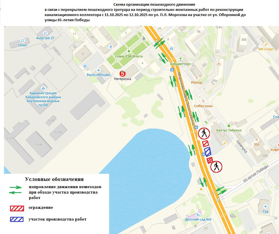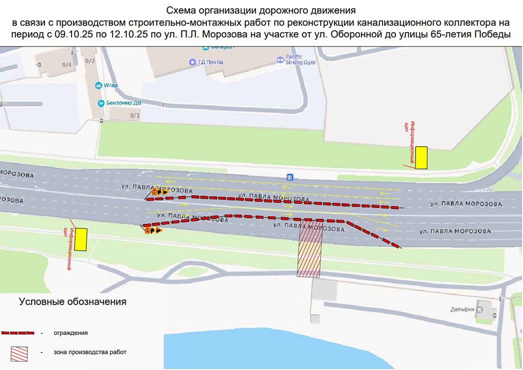 С 9 по 12 октября в Хабаровске будет ограничено движение транспорта на участке улицы Павла Морозова между Оборонной и улицей 65-летия Победы. Проезд полностью перекрыт не будет, но на протяжении 200 метров произойдёт сужение проезжей части. Ограничение связано с плановыми работами по реконструкции напорного канализационного коллектора.
