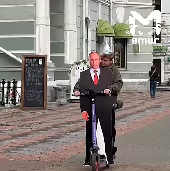 Фигуру президента местный школьник сделал специально к торжеству и гонял с ней по центру. Под праздничную музыку, конечно. Прохожие судорожно вспоминали слова гимна улыбались и снимали видосы.