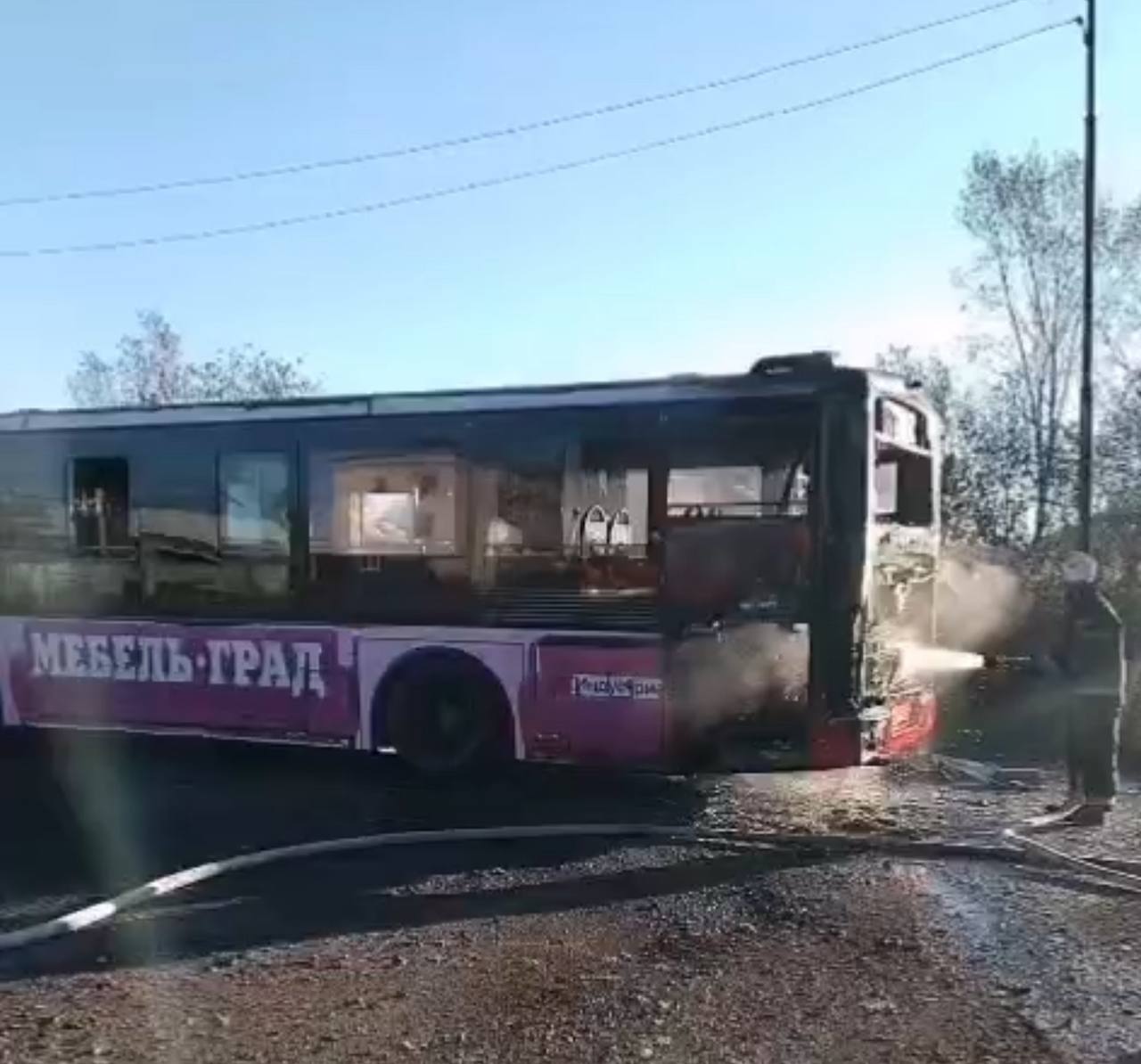 Пассажирский автобус горел на остановке в Хабаровском крае