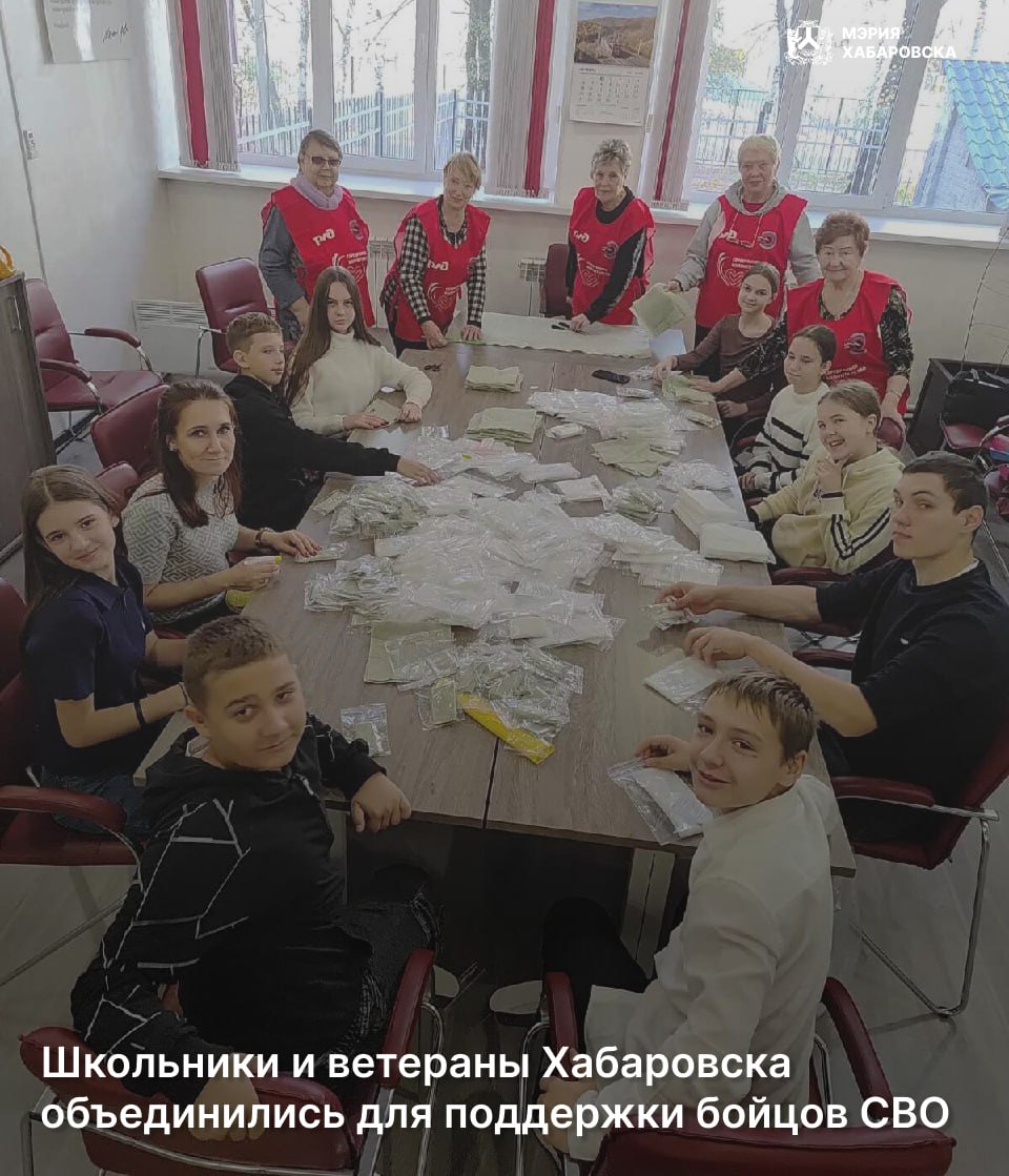 Школьники и ветераны Хабаровска объединились для поддержки бойцов СВО: изготовили 210 комплектов «сухого душа»!