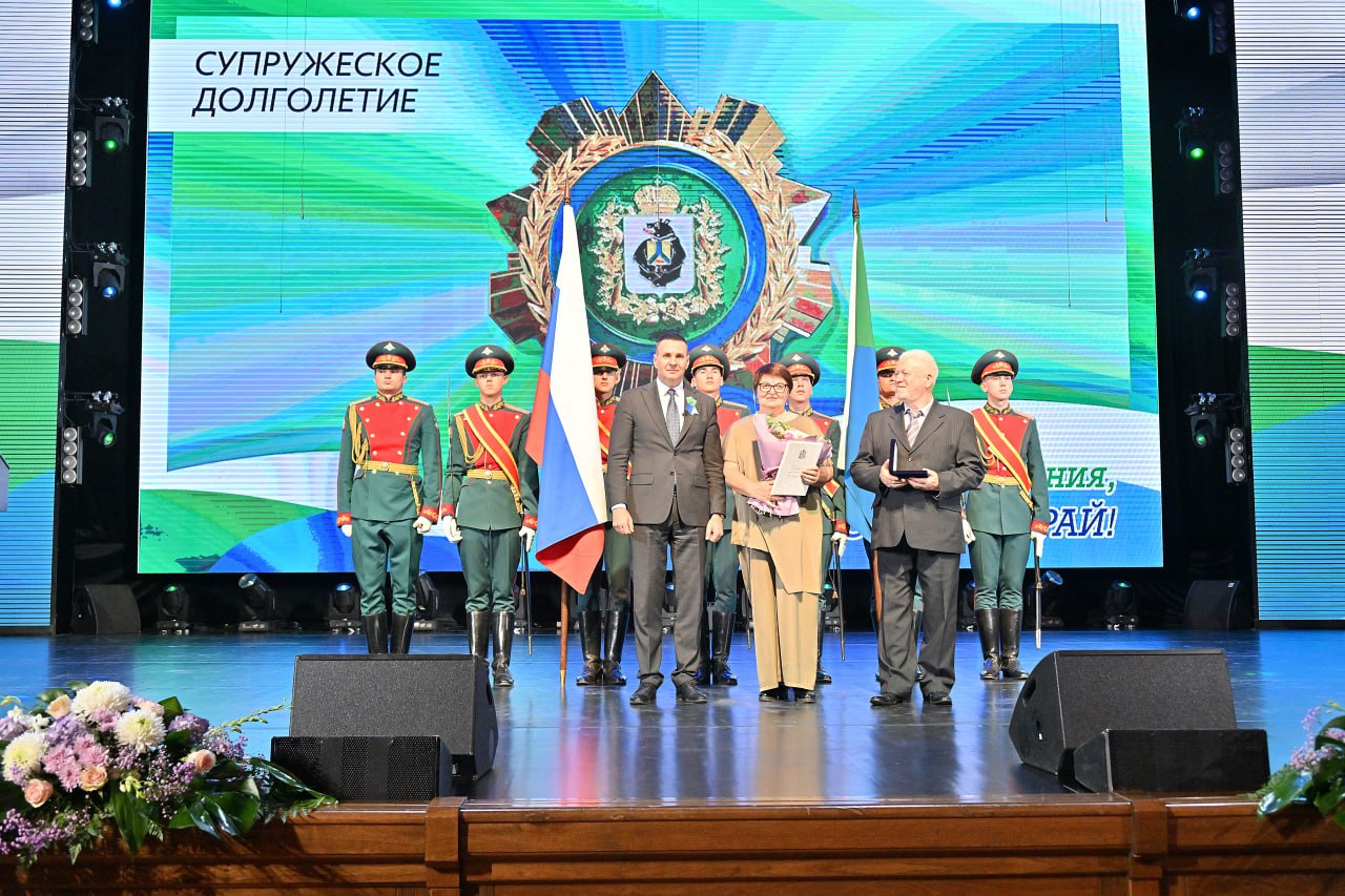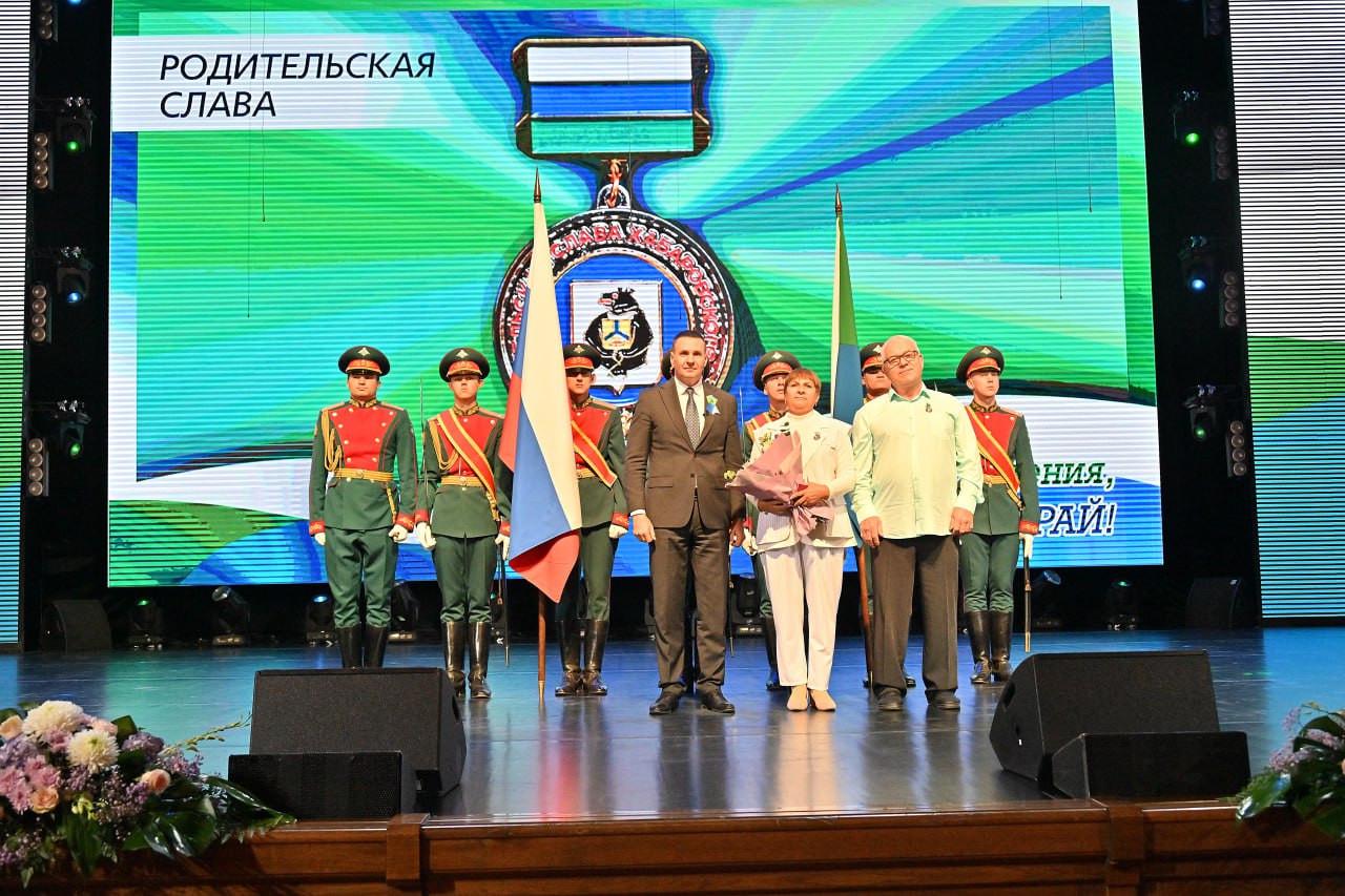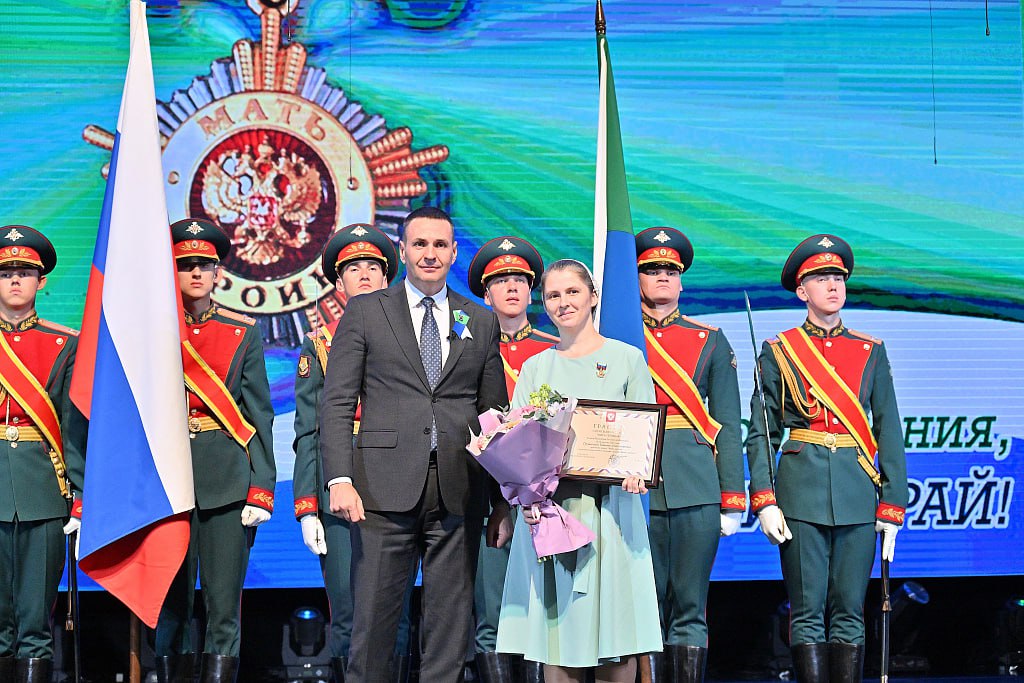Также на мероприятии Указом Президента было присвоено звание «Мать-героиня» Татьяне Грушевской и Наталье Николаевой, родившим и достойно воспитывающим по двенадцать детей. Вручены почетные знаки «Родительская слава Хабаровского края» за достойное воспитание детей, укрепление института семьи и ведение здорового образа жизни, знаки «За заслуги перед Отечеством», «За безупречную службу», «За заслуги перед Хабаровским краем». Все эти люди, получившие награду, вносят свой вклад в развитие города и края. Хабаровск демонстрирует устойчивое развитие, и мы не останавливаемся на этом!
