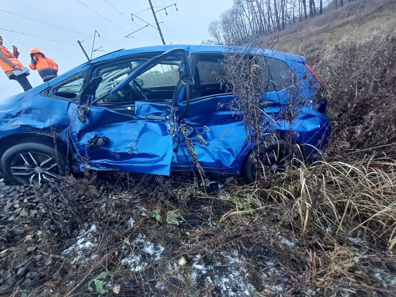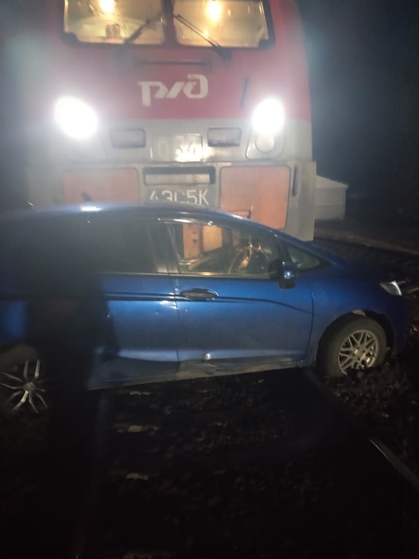 ДТП с участием грузового состава произошло сегодня около 5 часов утра в Вяземском районе. Водитель авто марки «Хонда Фит» выехал на железнодорожный переезд и внезапно заглох на путях. На переезде сработала световая и звуковая сигнализация. Водитель и пассажиры успели вовремя покинуть салон. В этот момент проезжавший грузовой поезд сбил пустой автомобиль.