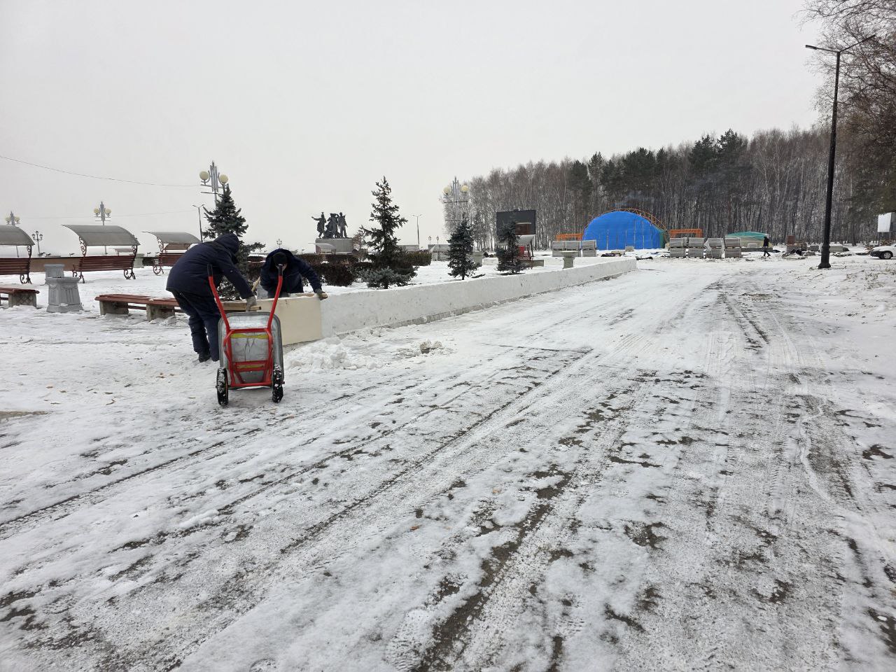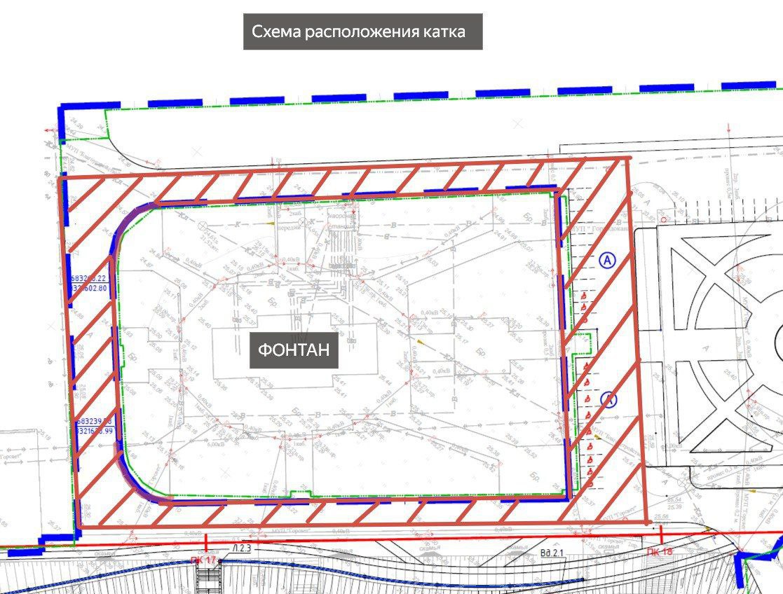 Специалисты начали подготовку площадки для нового катка около сцены. Сейчас активно формируют снежные ограждения вокруг фонтана. После завершения монтажа начнется заполнение водой как самих ограждений, так и основной поверхности катка.