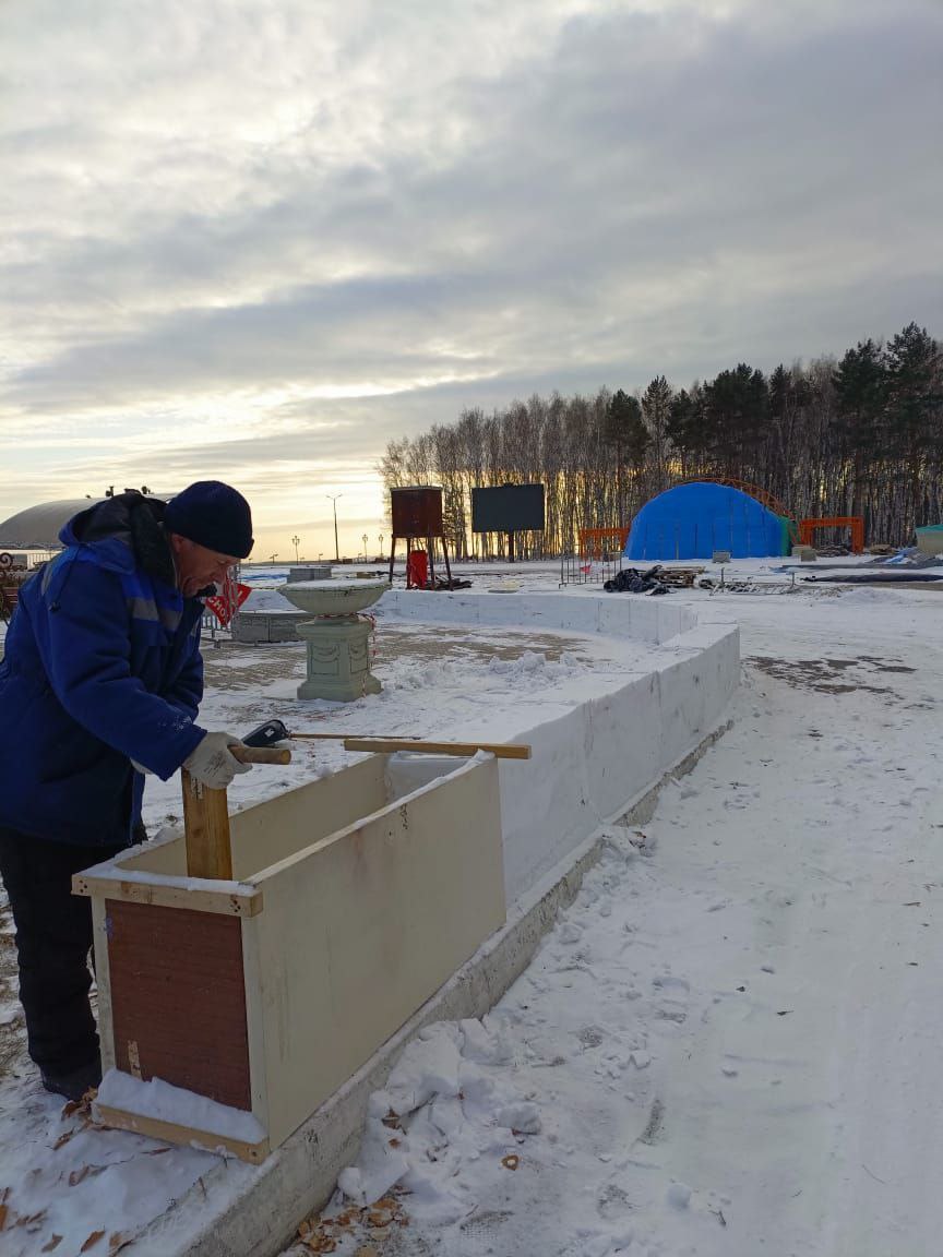 На городской набережной Комсомольска начали подготовку к заливке катка