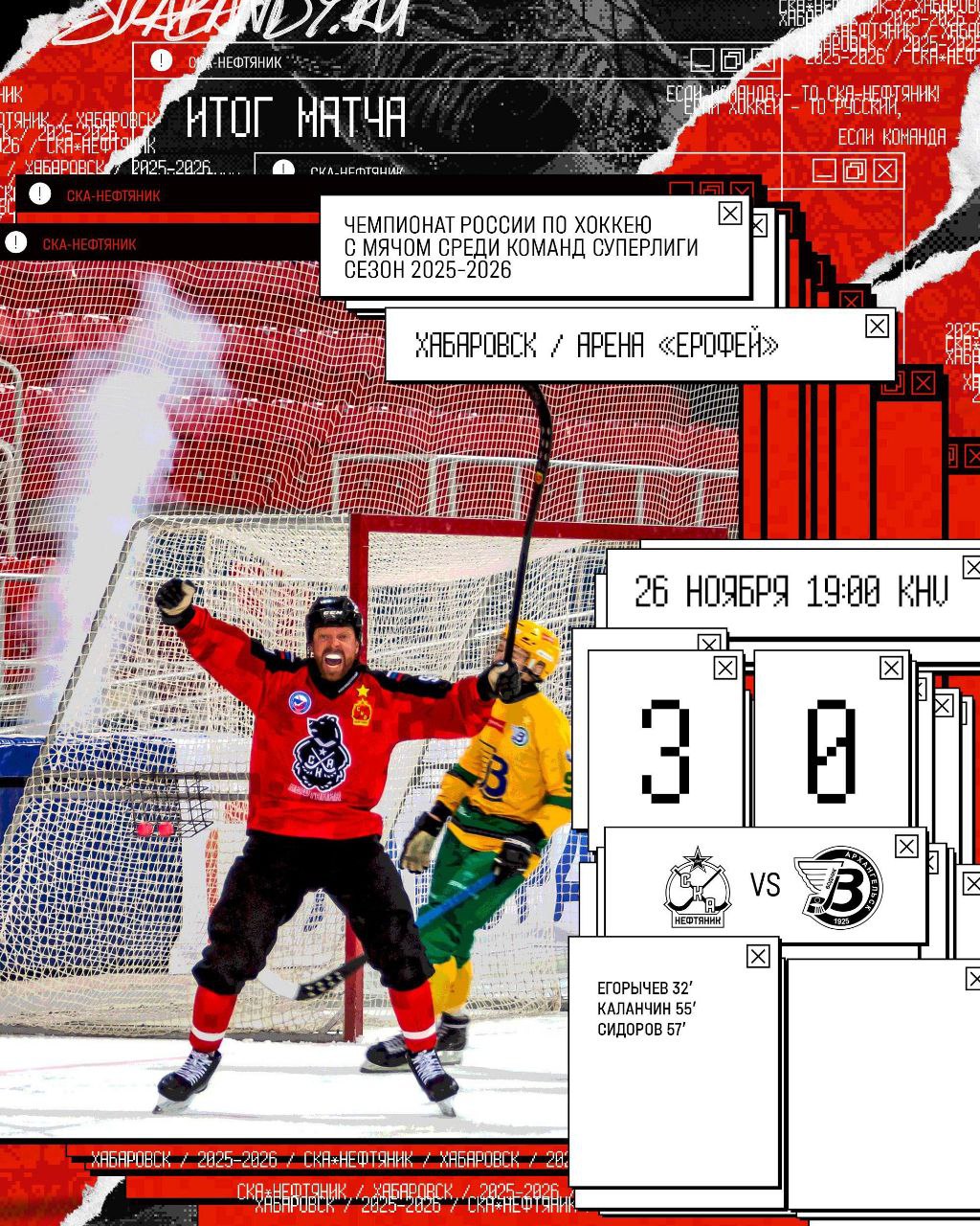 ХК «СКА-Нефтяник» обыграл своего соперника ХК «Водник» со счетом 3:0.