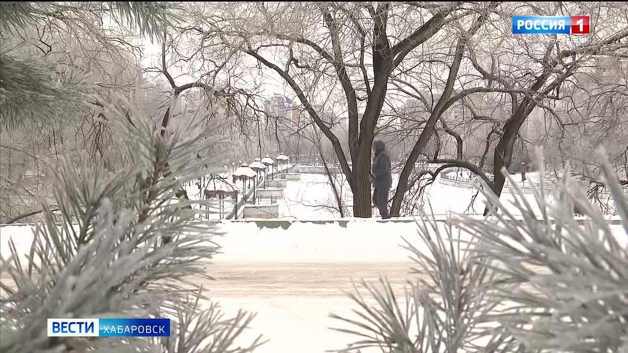 Лёгкий мороз и высокая влажность превратили хабаровские парки и дворы в «зимнюю сказку»