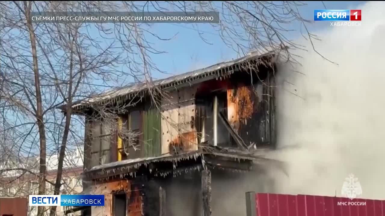 Двухэтажный жилой дом сгорел в переулке Бурейский в Хабаровске, погибла женщина