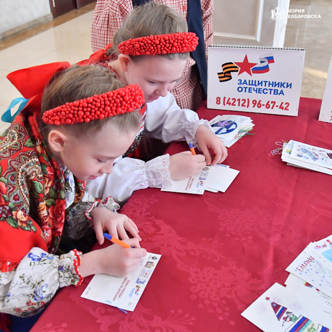 Также все желающие смогли подписать новогодние открытки для участников специальной военной операции из Хабаровского края.