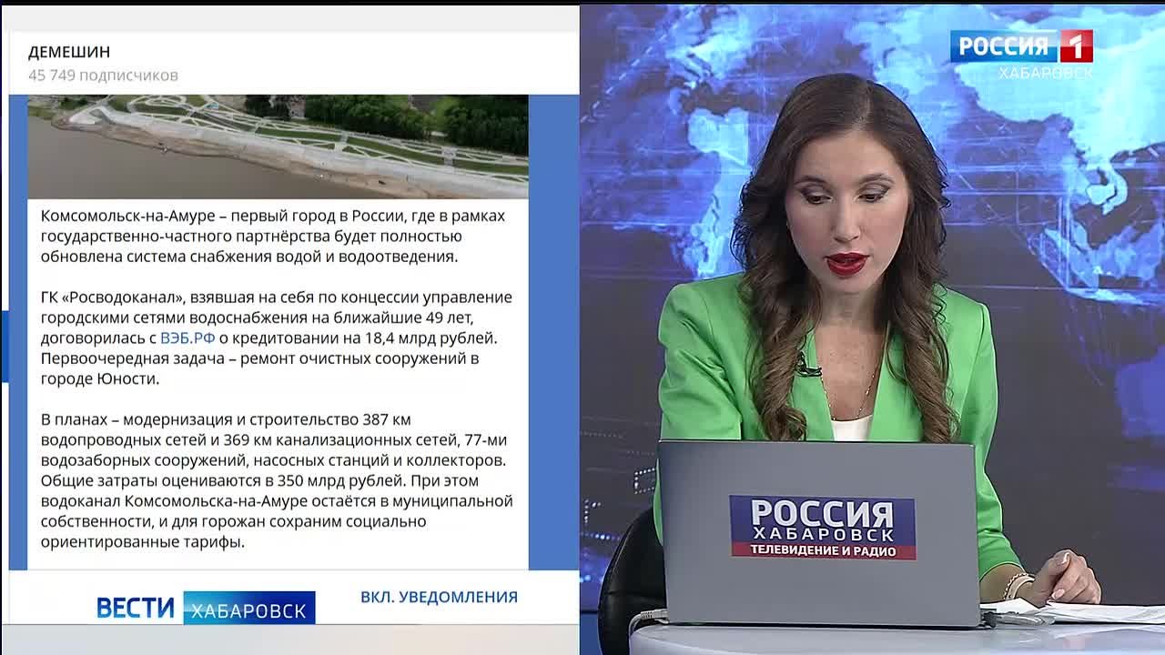 Как сообщил в своем телеграм-канале Дмитрий Демешин, договоренность о кредитовании достигли группа компаний "Росводоканал" и ВЭБ.РФ.