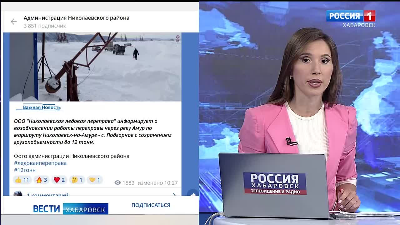 Как сообщает телеграм-канал районной администрации, сегодня налажено транспортное сообщение через Амур по маршруту Николаевск – село Подгорное. Здесь может проезжать транспорт грузоподъёмностью до 12 тонн.