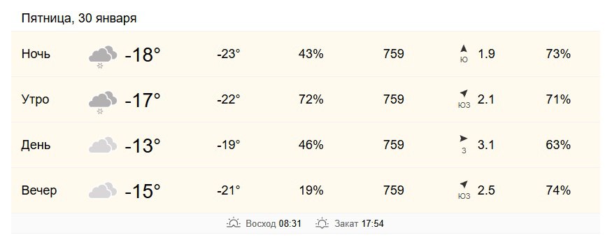 30 января в Хабаровске от -17 до -13 градусов.