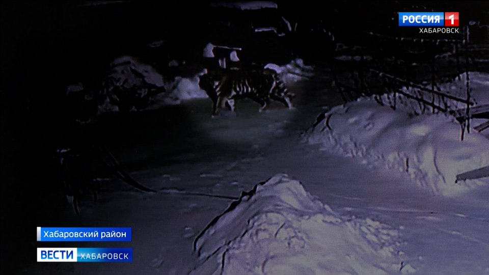 «Еле оклемались, теперь смотрим по сторонам»: тигр попал на камеры наблюдения в селе под Хабаровском