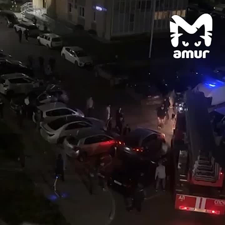 Люди руками растаскивали припаркованные машины, чтобы освободить путь пожарным в Хабаровске.