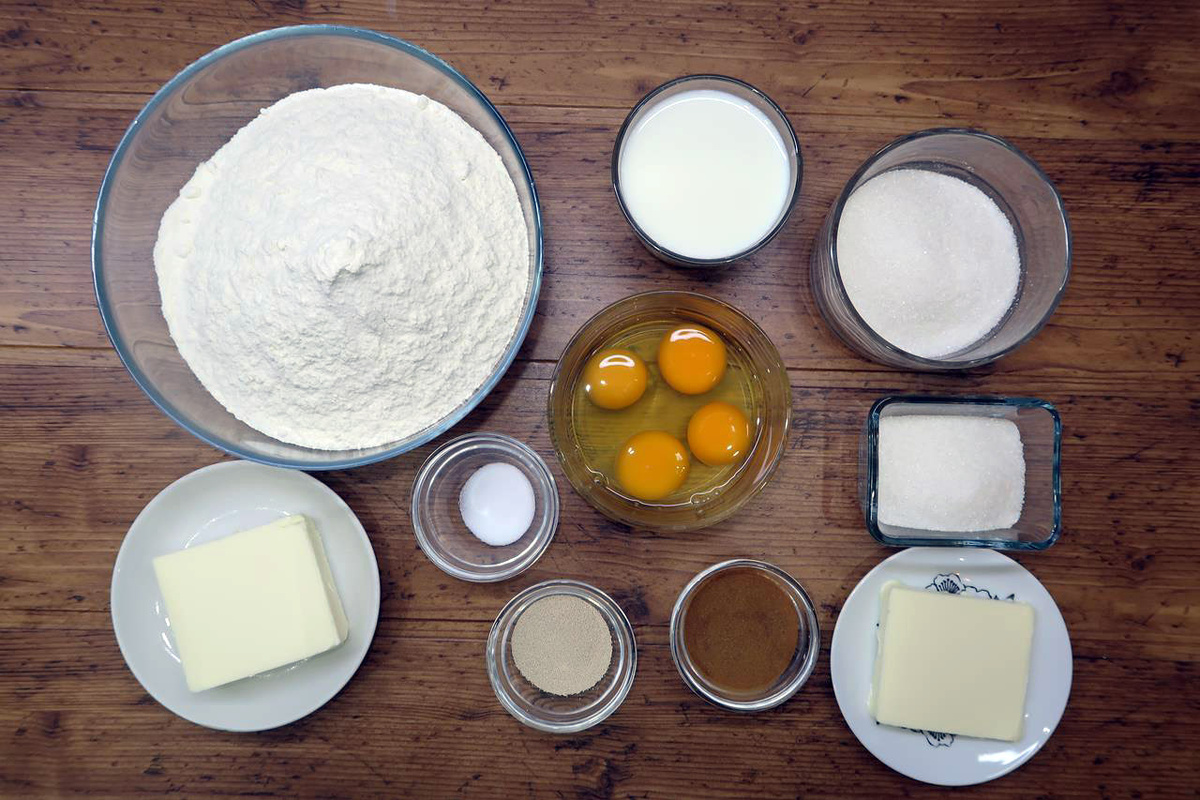 Спустя час, когда тесто увеличится в объеме, его нужно обмять и оставить еще на 60 минут. Пока тесто поднимается, можно подготовить начинку: сахар смешивают с корицей для создания неповторимого аромата.
