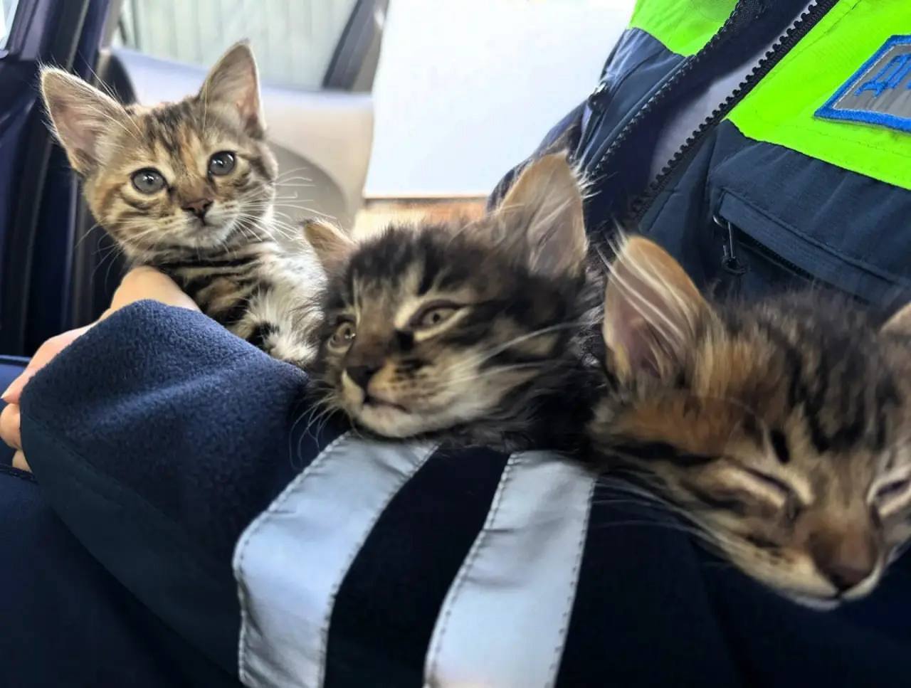 Котят выбросили на обочину оживленной трассы. Инспекторы Максим Лукьянов и Роман Новиков спасли их, накормили и передали городской службе защиты животных. Сейчас котятам ищут новых хозяев.