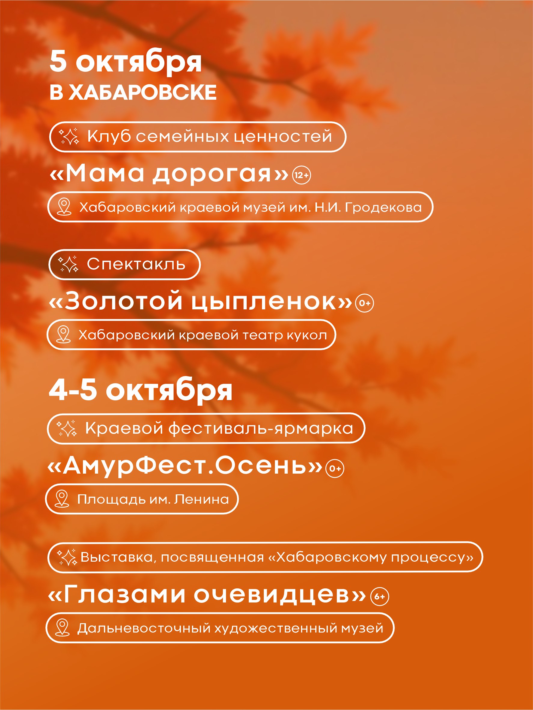 Наша афиша поможет определиться жителям и гостям Хабаровского края с мероприятиями и событиями по душе.